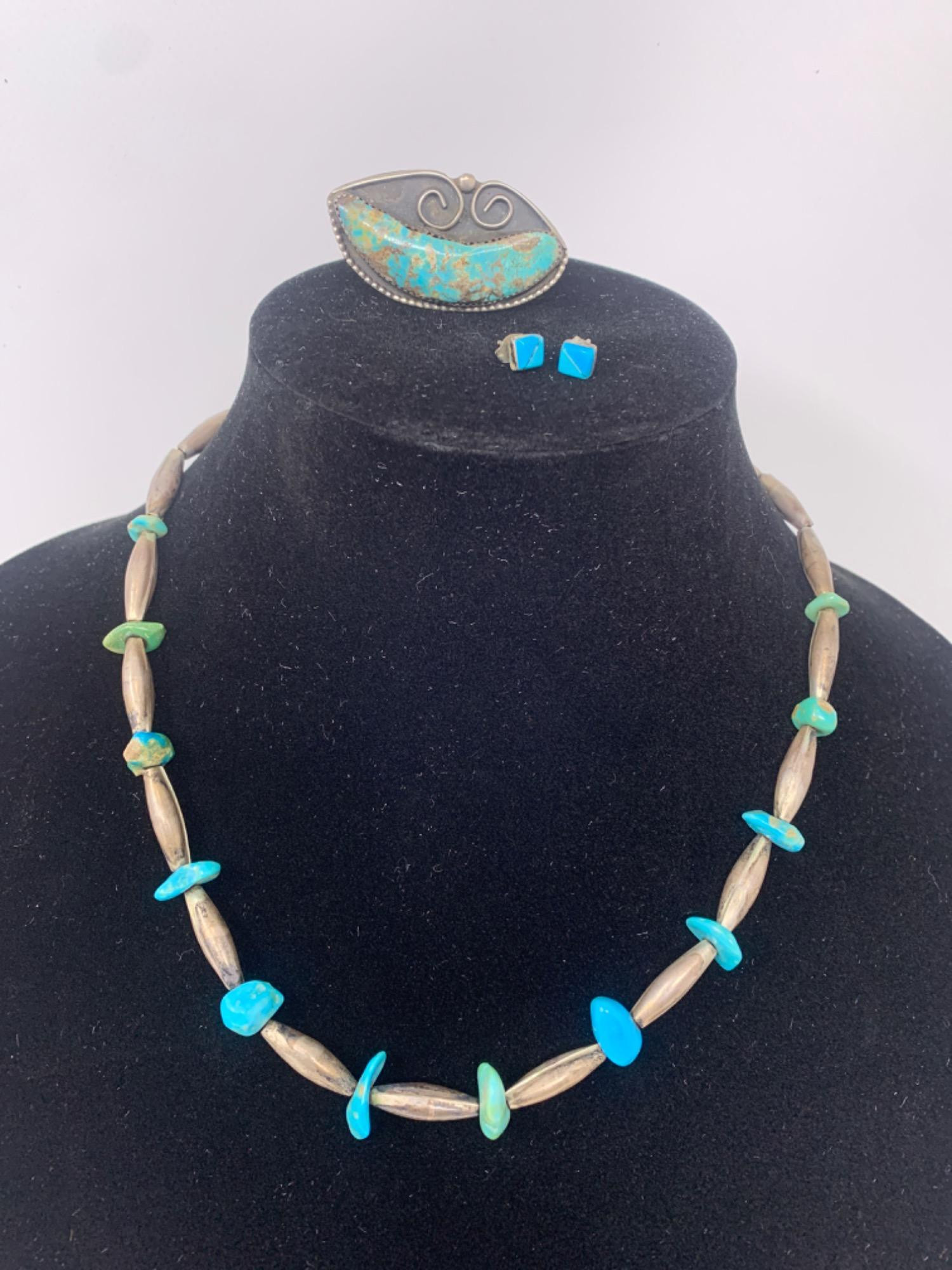 Lot # 29 - Sterling Silver and Turquoise Necklace, Ring, Earrings