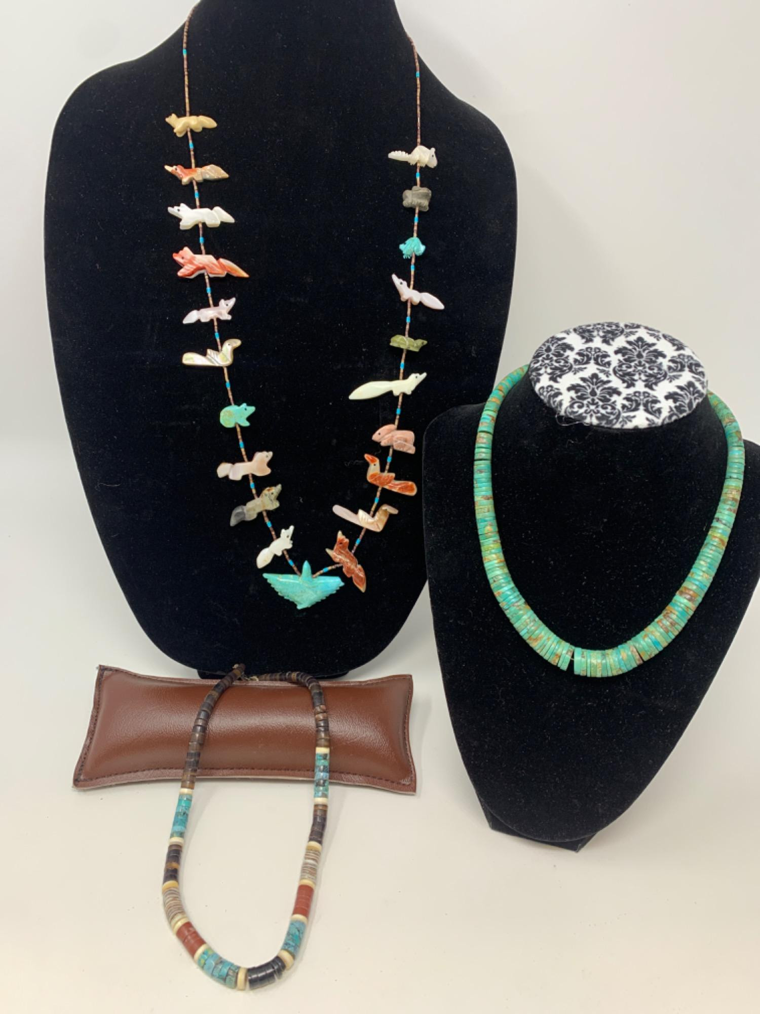 Lot # 102 - Zuni, Mother Of Pearl Fetish Necklace, 2 Heishi Necklaces
