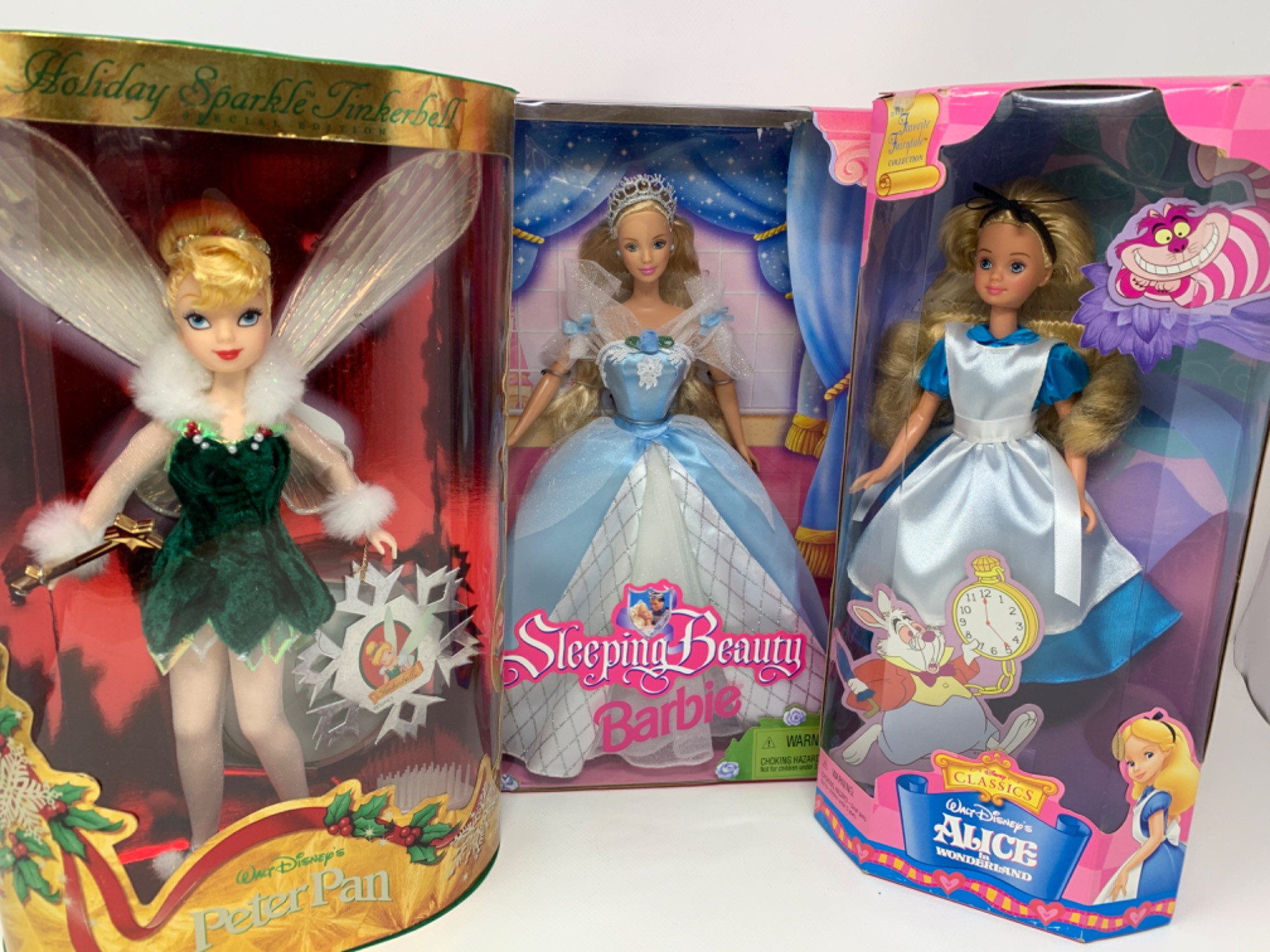 Peter Pan, Sleeping Beauty and Alice in Wonderland Barbie Collectibles. NIB.