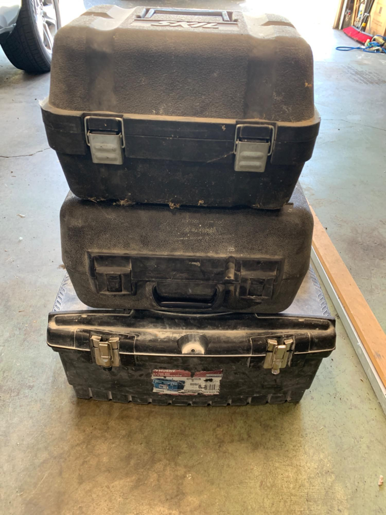 Makita electric router, powers up. Skil saw 4 3/4 precision circular saw. Powered up. Flex round sander. Powered up. All include carrying boxes and some have accessories. See pictures