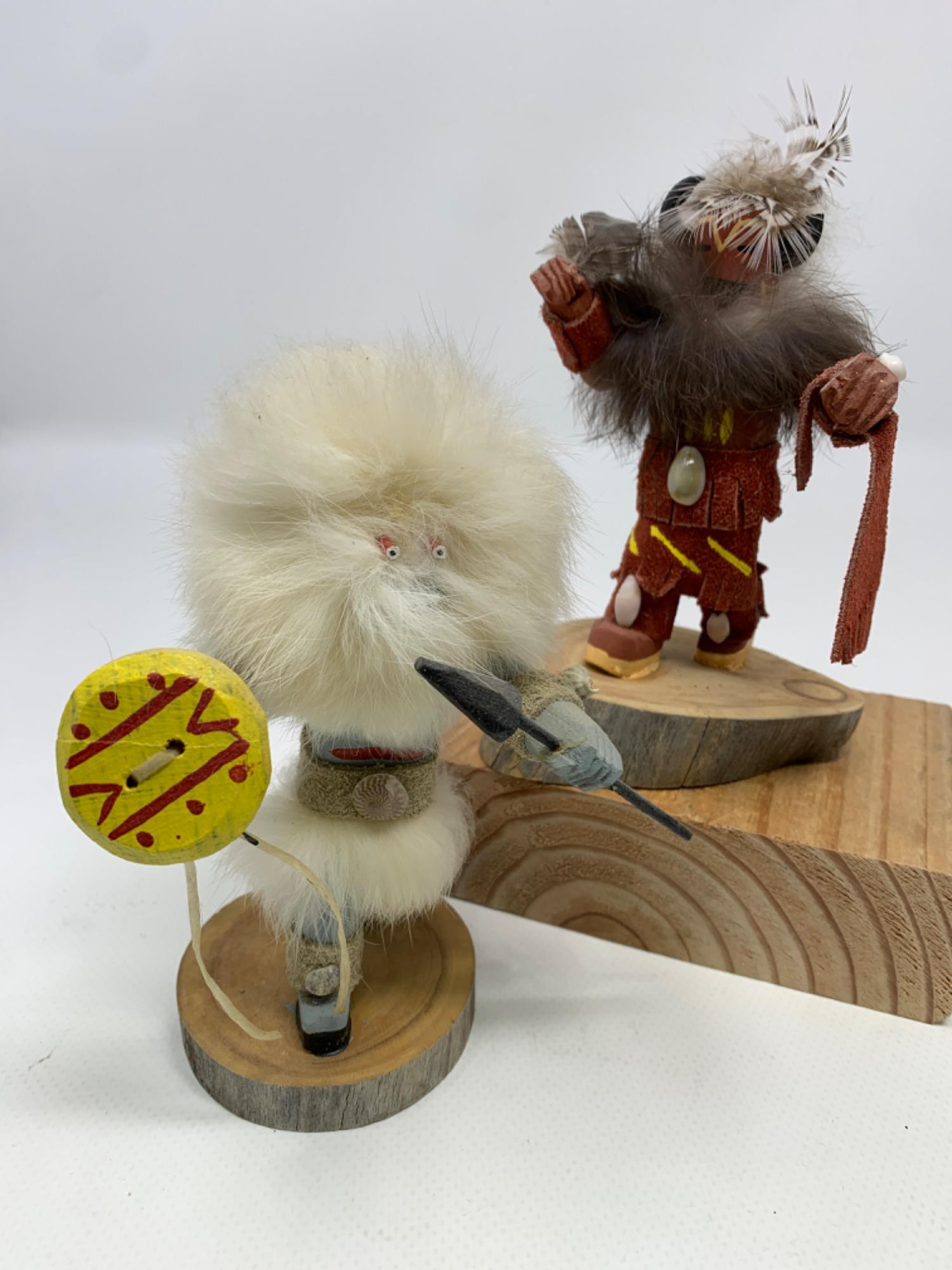 Two small vintage katsina figures. Approximately 5 inches tall and 6 inches tall. Signed by artist. Delicate