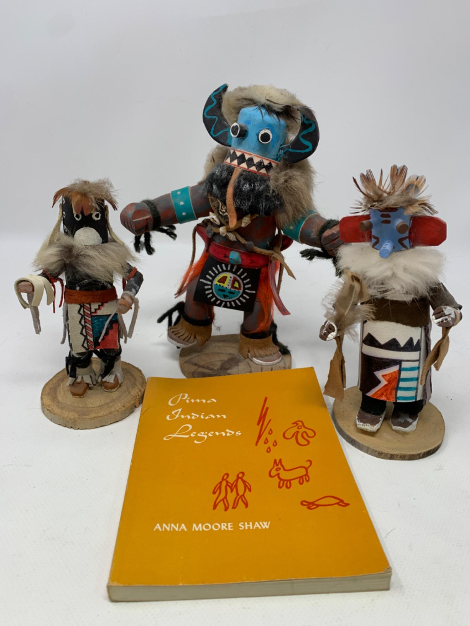 Vintage Katsina character trio. Pima story book. Condition is good. See pics for details.