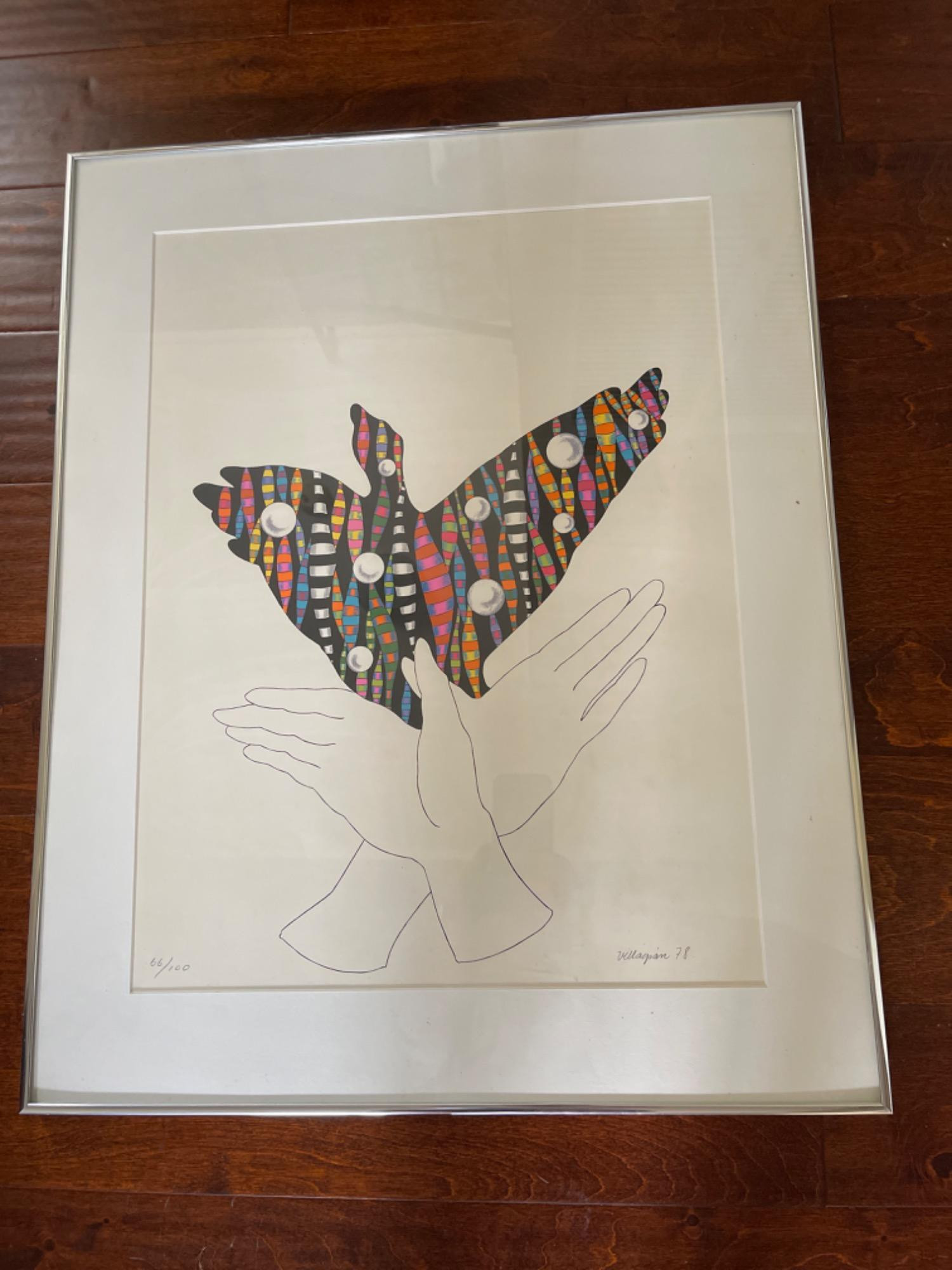 Original Signed/Number Serigraph By Arman Villagran 66/100 Armando Villagran lived from 1945 to 1995 in Mexico. He was a self-taught artist, painter, draftsman and illustrator with a neo-figurative style. He has been considered by Mexican art critics as a poetic visual artist and is considered to be one of the artists who tried to create a universal expression from regionalisms or ethnicities. This print does not come with a COA. 22.5 x 28.5