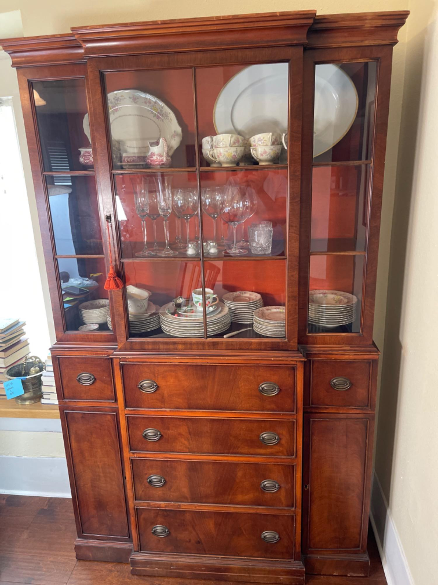 Vintage 1940s George II Style Display Cabinet. Dove Tail drawers, and original handles. Solid Wood.