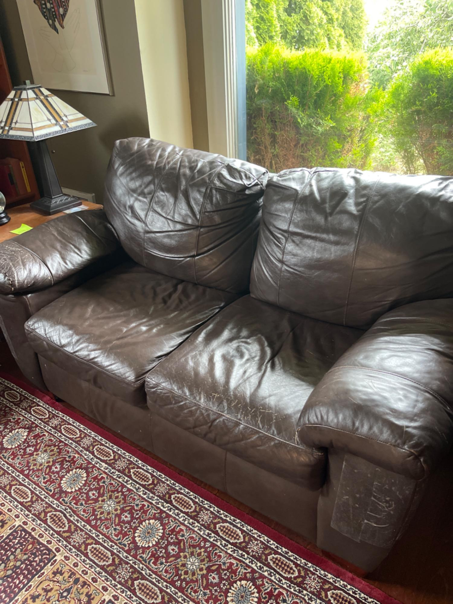 Stratford Leather Loveseat-Santana Boyd-66" Long Significant wear, Tape was put on the sides, residue left.