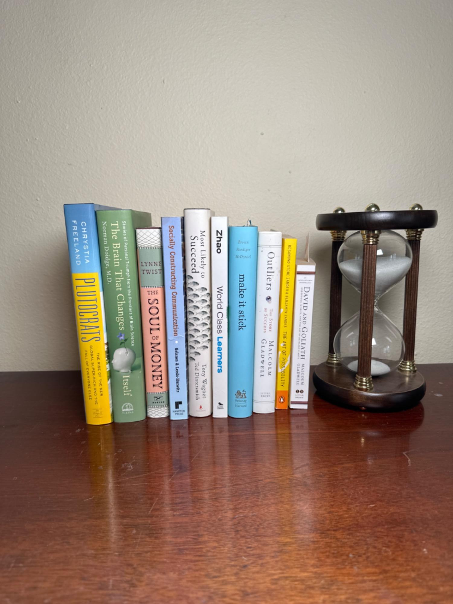 Book Lot 6- Self Help Books, Finance, Political and More-Hour Glass Soul of Money, socially constructing communication most likely to succeed oil class learners make it stick outliners David and Goliath. The brain that changes Christina Freeman.