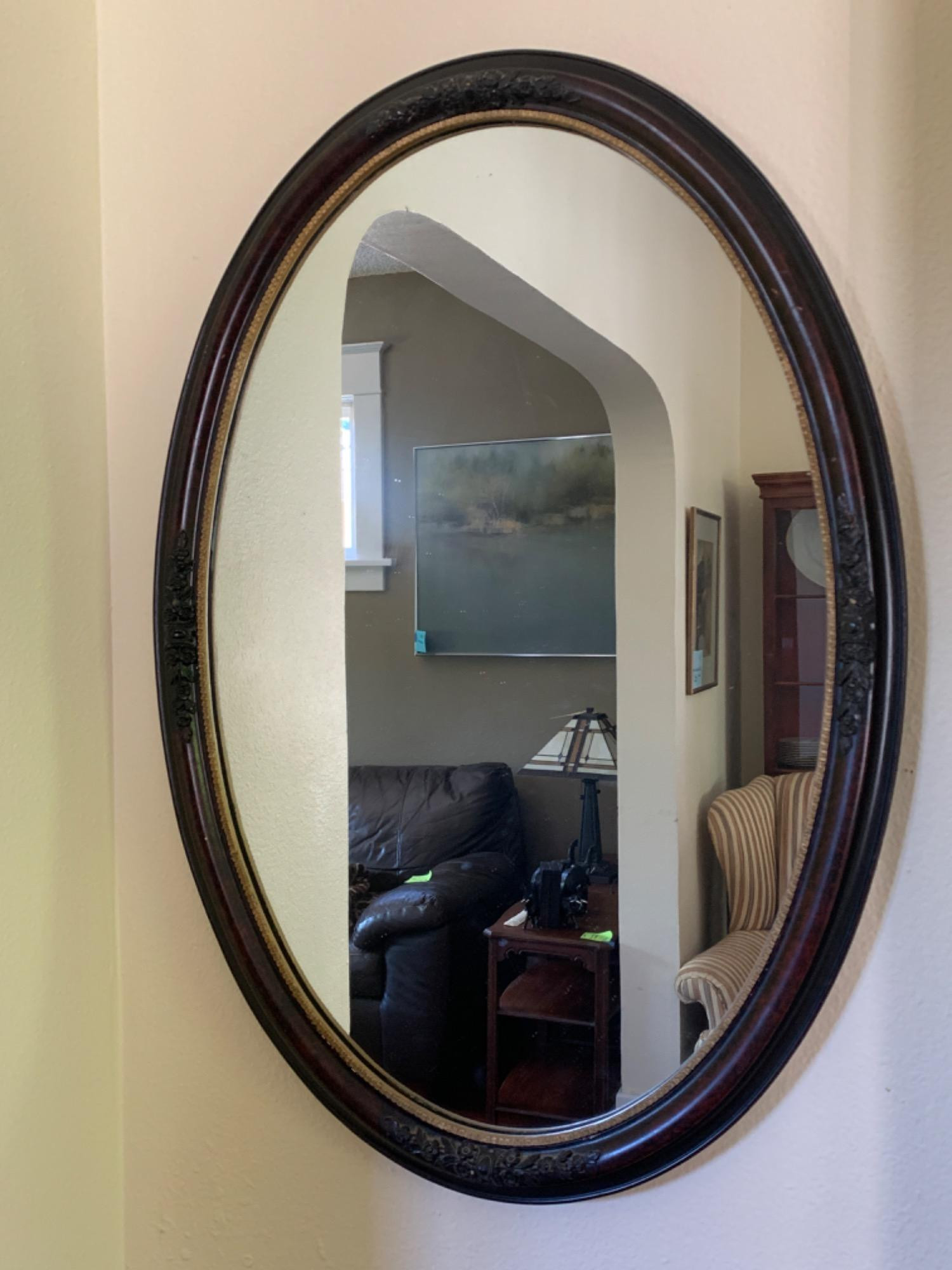 Lot # 93 - Vintage Carved Wood Oval Mirror