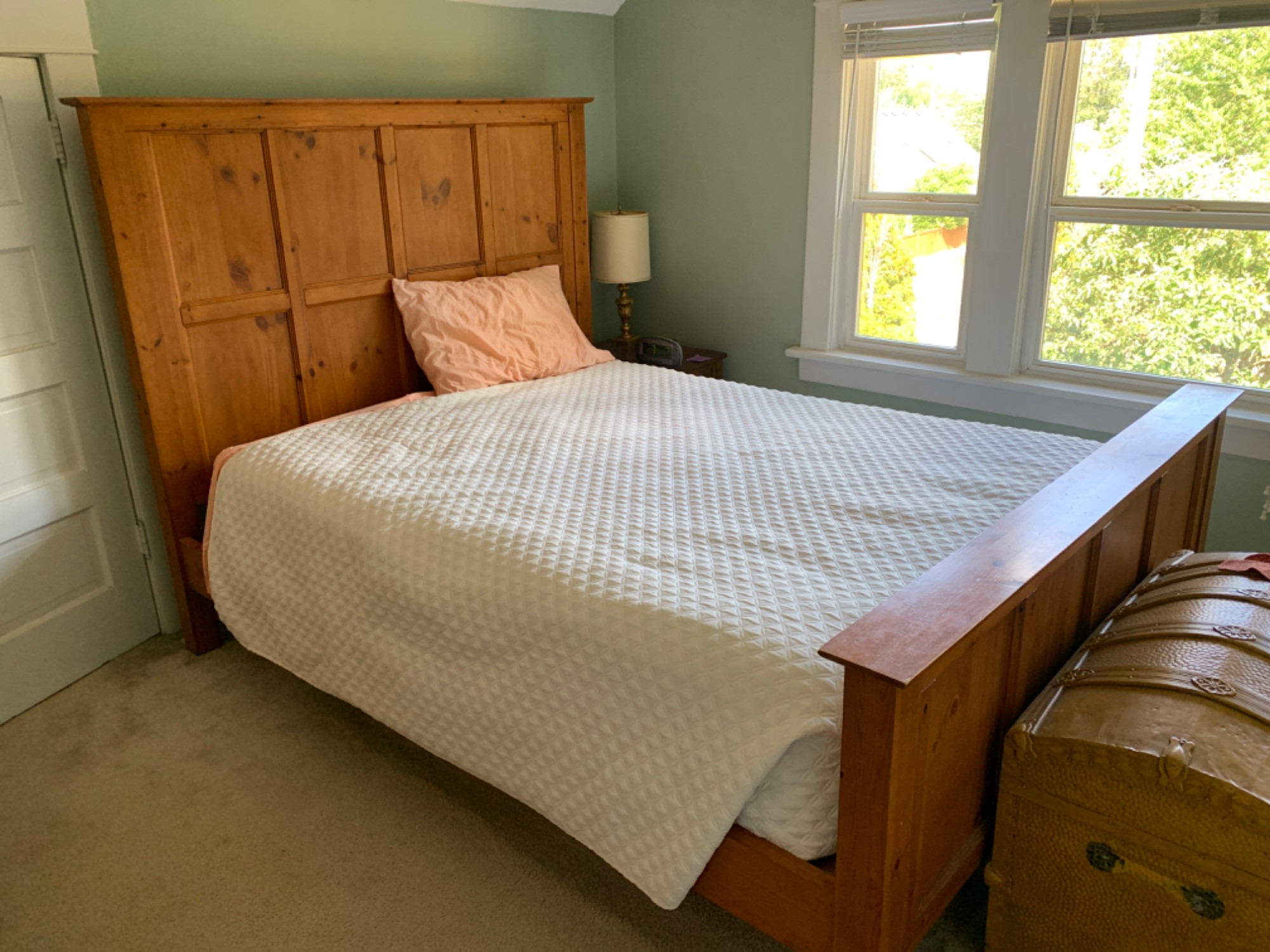 Lot # 120 - Honey Oak Queen Size Bed-Queen Mattress -Bedding Included