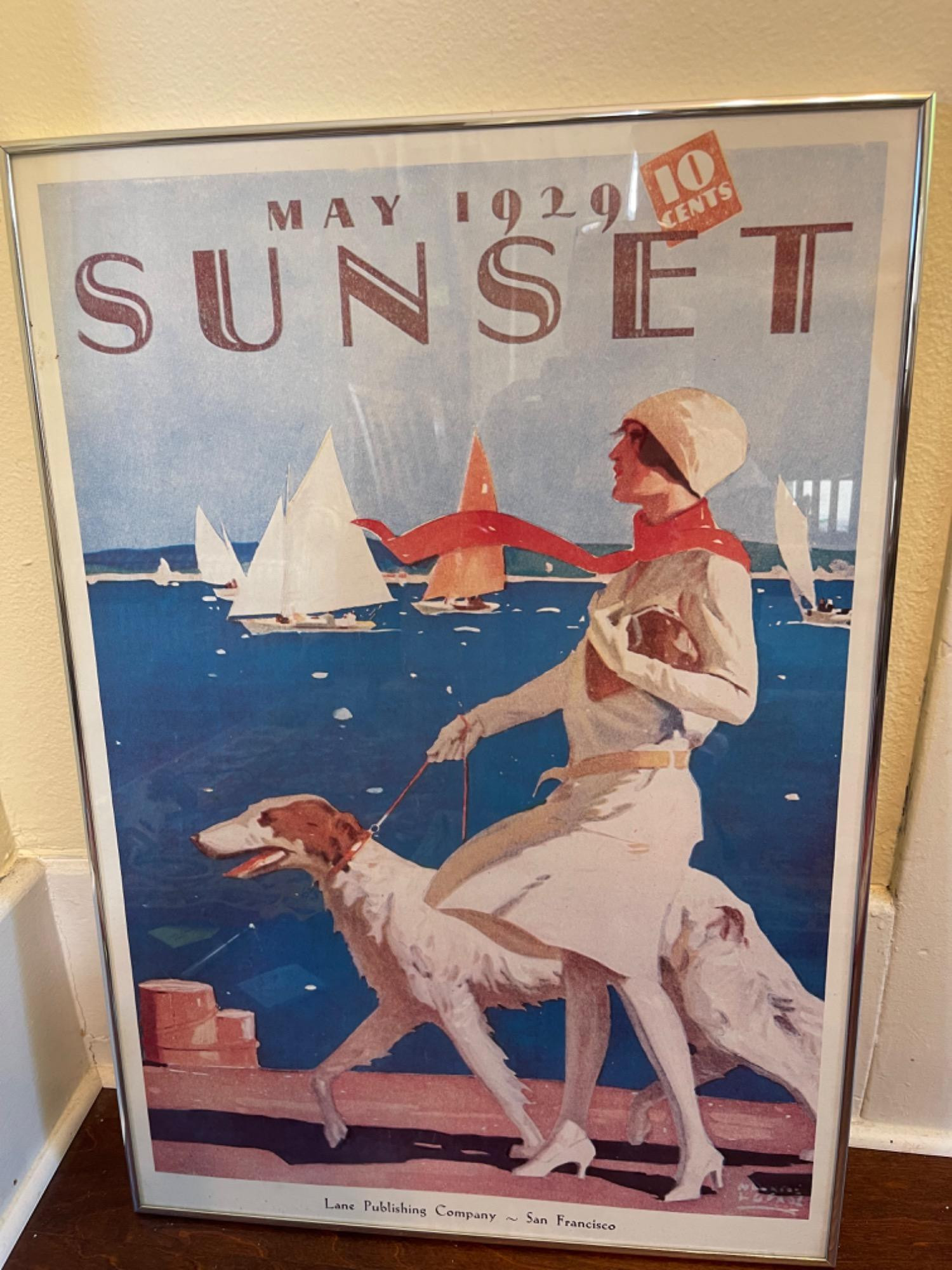 Vintage Poster- May 1929 SUNSET By Lane Publishing Company. Some slight warping on poster. Vintage chrome frame. 29 x 20