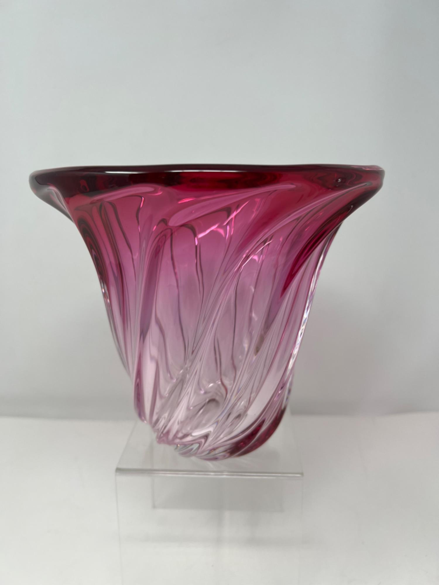 Lot # 12 - Signed Van St Lambert Pink Swirl 6.5” Tall Crystal Vase