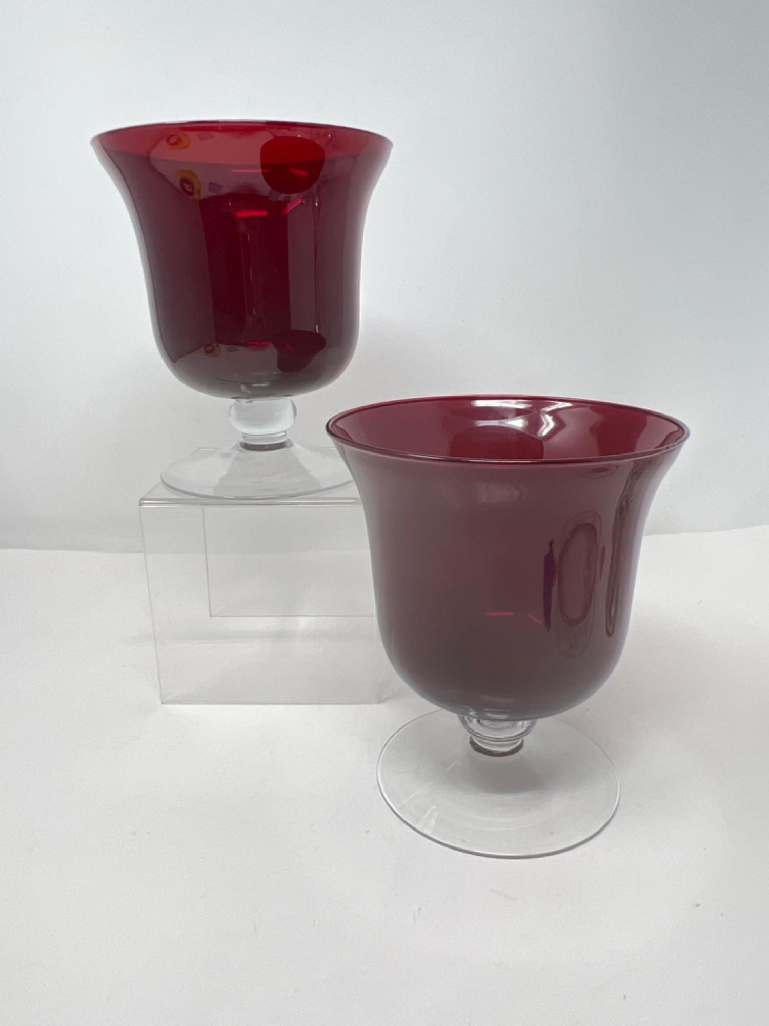 These vases are in excellent vintage condition. Glass is ultra-thin and a deep ruby color. Pedestal and base is clear glass.