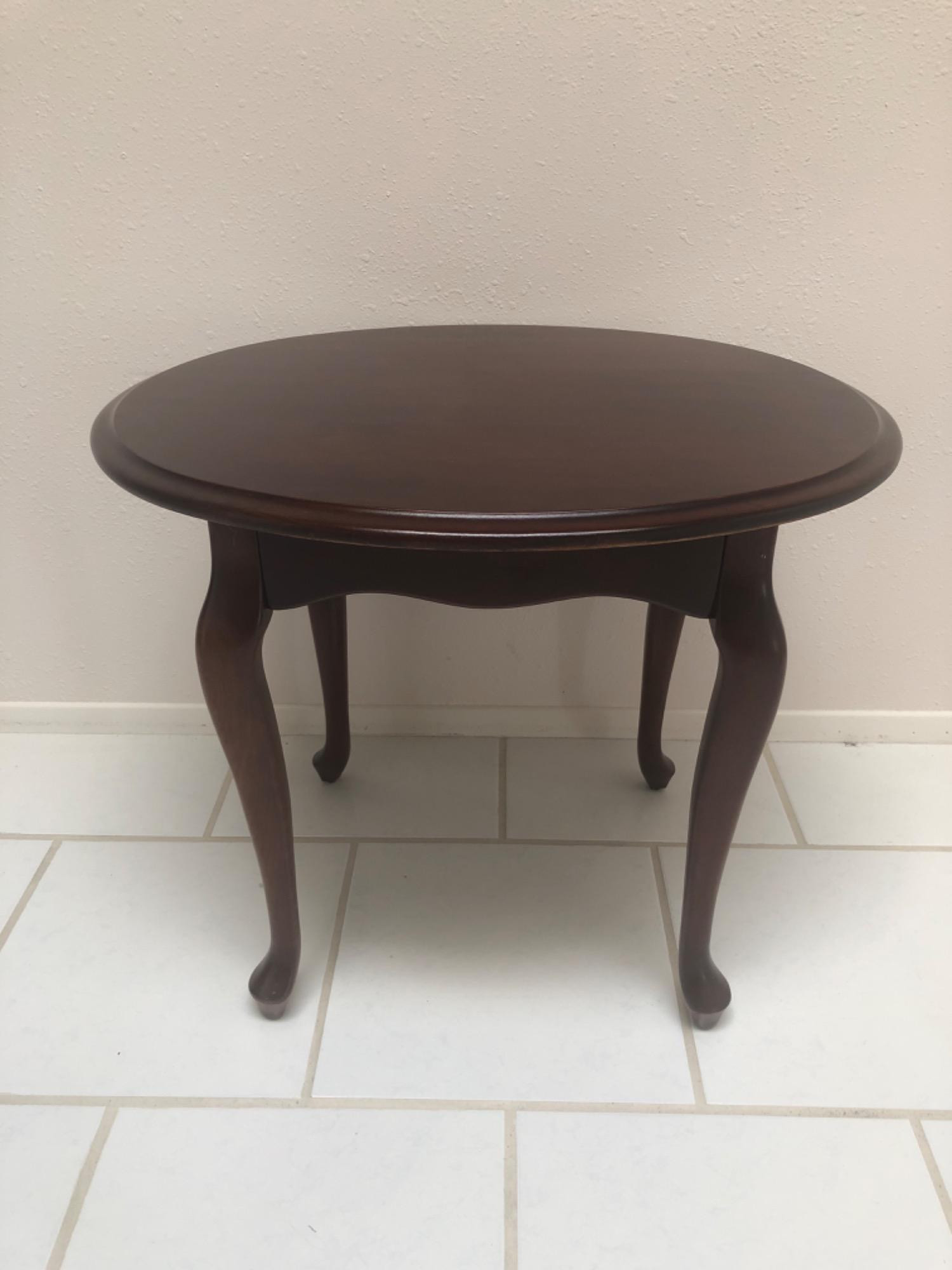 Oval shaped side table with Queen Anne styling. Made by CM Furniture. Table is like new.