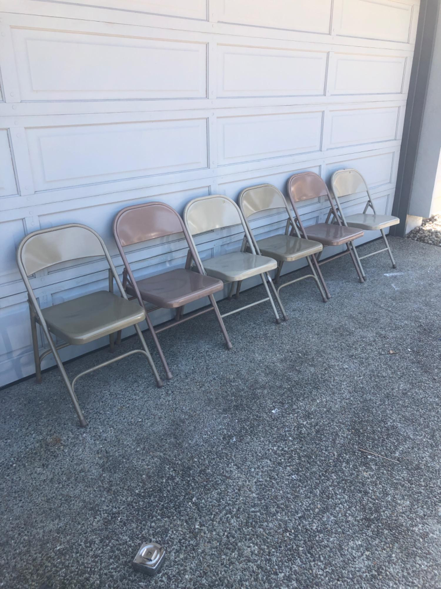 6 Metal Folding Chairs Dimensions: Ground to seat 17.5 inches - Total back height 30 Inches - Seats 16 inches wide x 16 inches deep