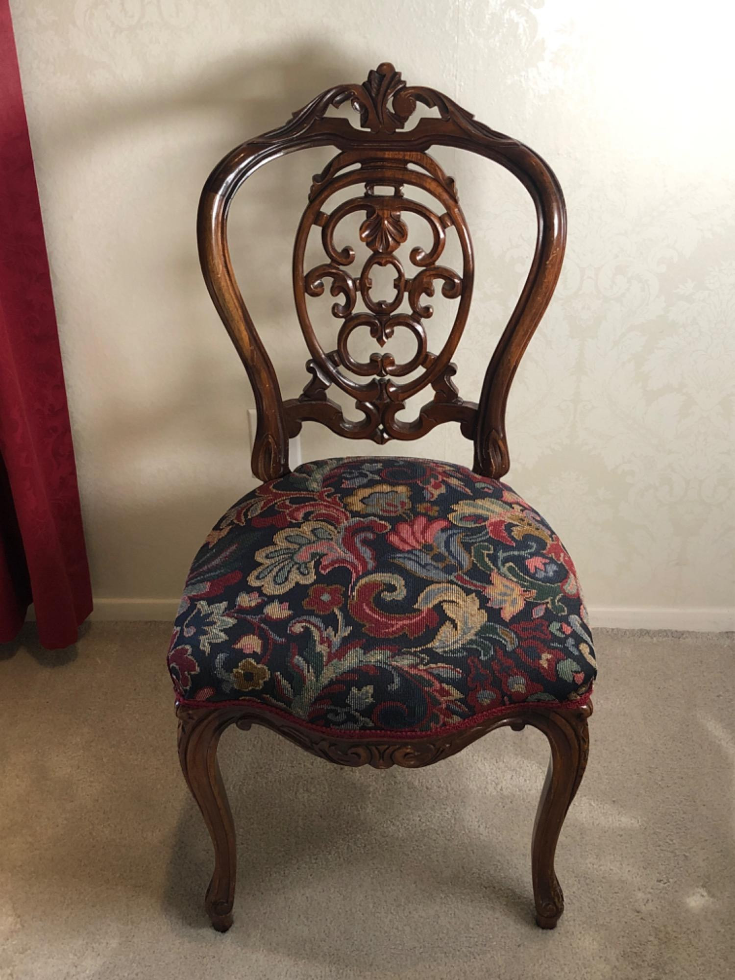 Victorian Carved Floral Sitting Chair Dimensions: Ground to top of seat 17 inches - Ground to top of back 34 inches - Seat width 17 inches - Seat depth 15 inches