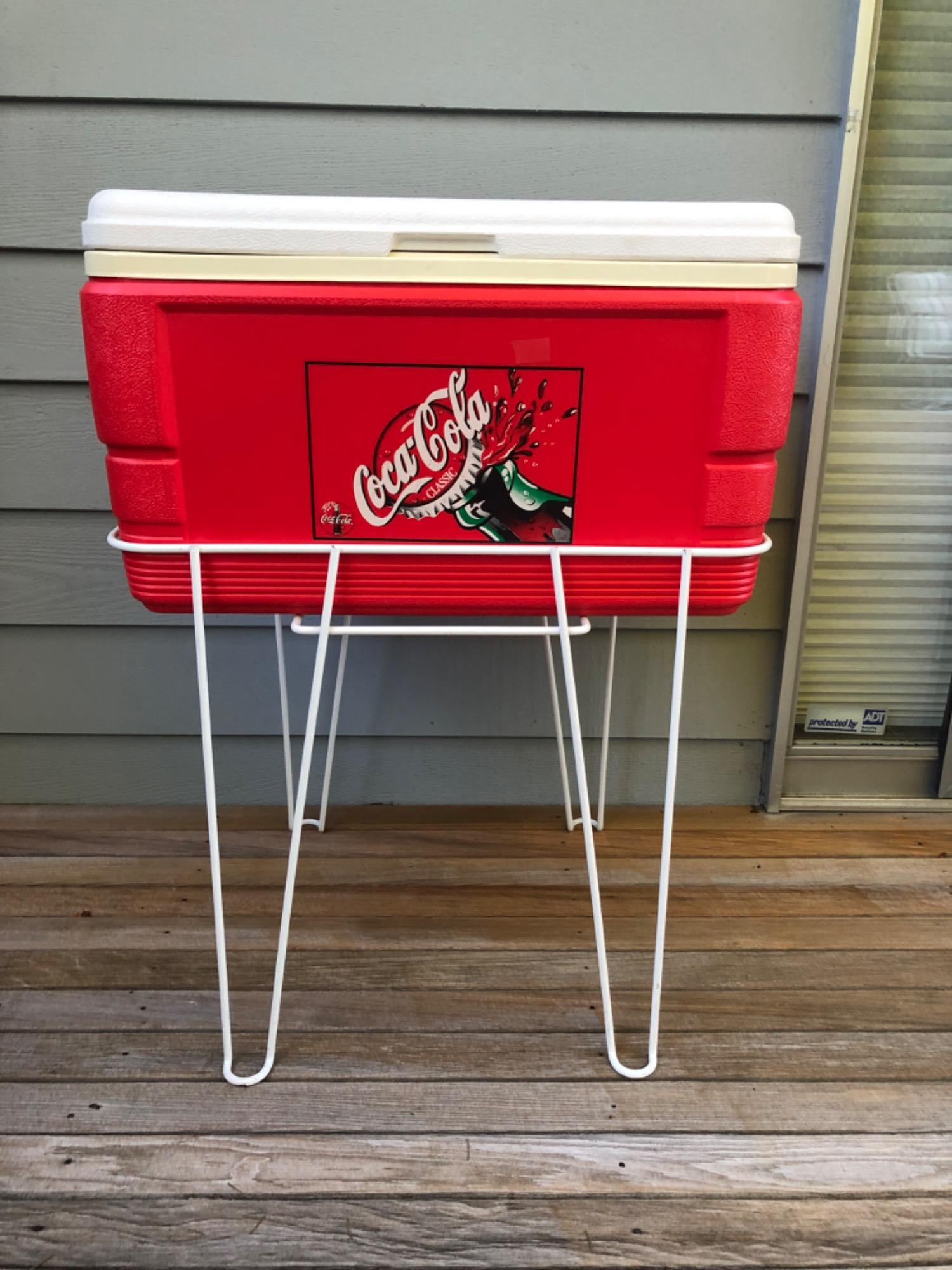 Large Igloo Coca-Cola Cooler With Retro White Metal Stand Extra stand included
