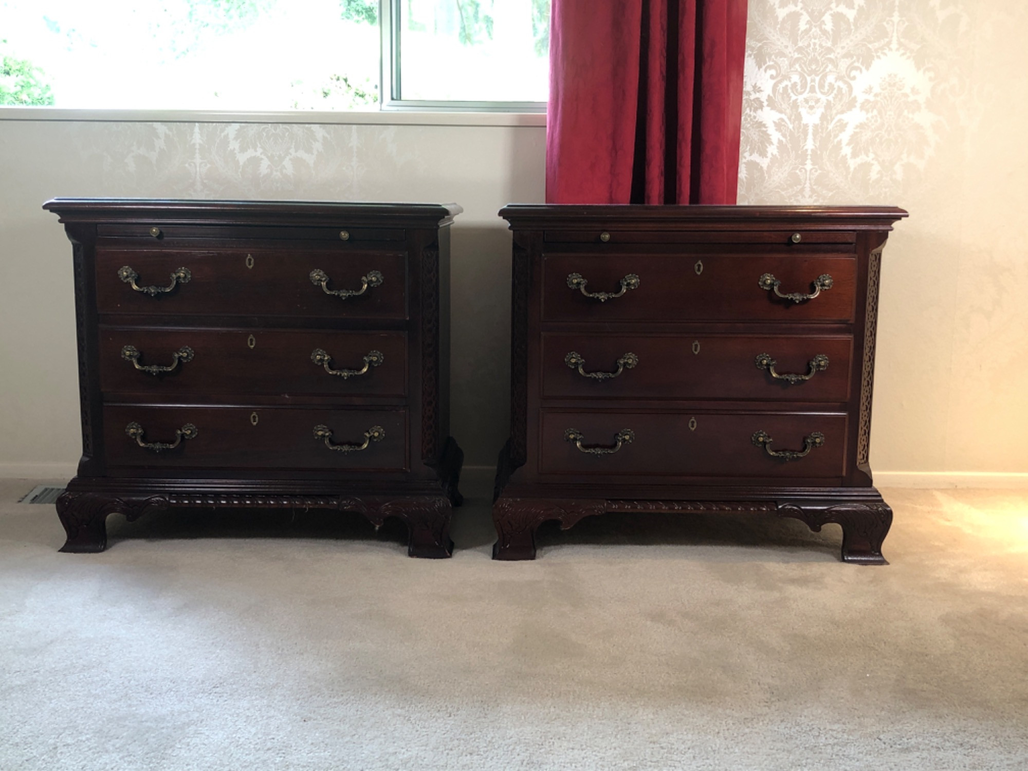 Pair of Stoneleigh Mahogany Night Stands Includes pull out table and 3 drawers