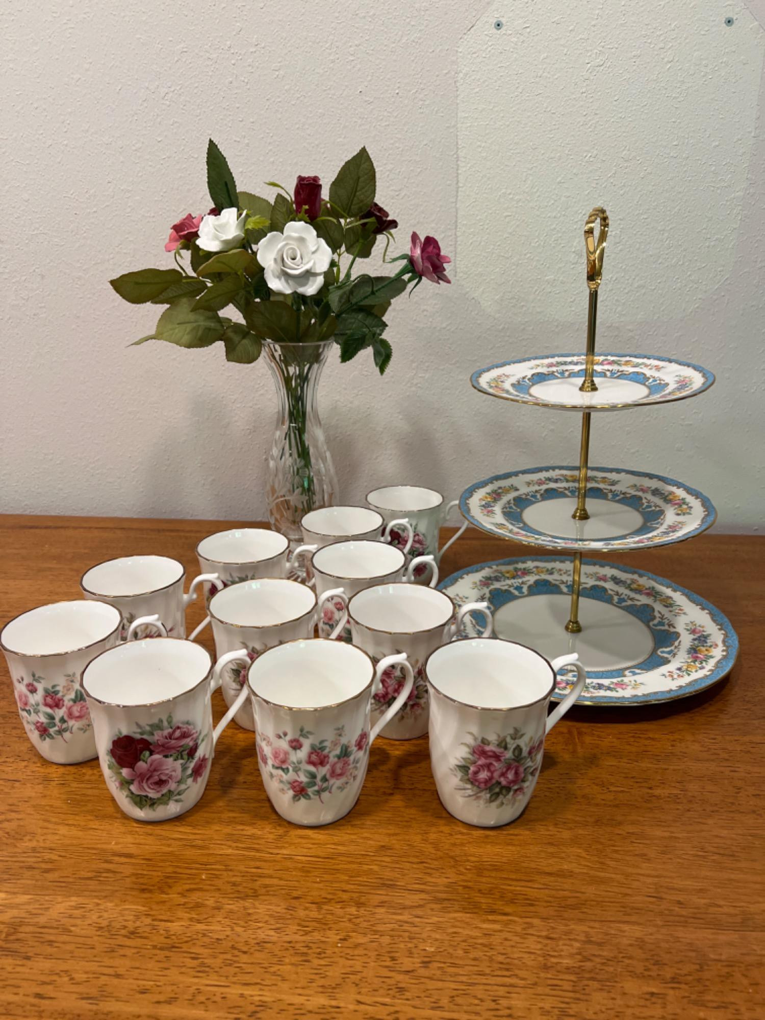 Lot # 170 - Royal Sutherland Gold Trimmed Cups & Staffordshire Tri-Tiered Server