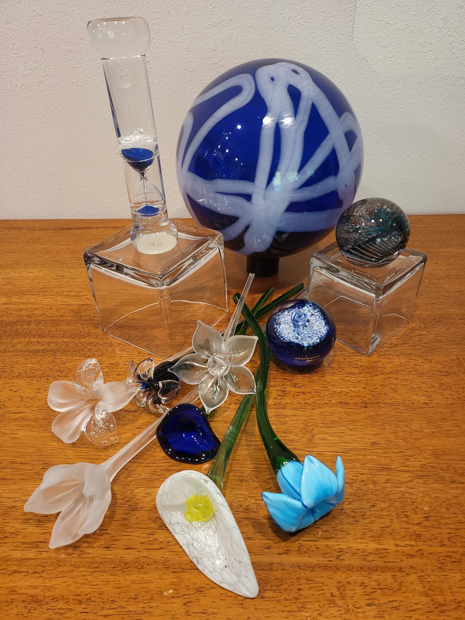 Lot # 179 - Glass Orbs, Glass Floral Art & Minute Sand Timer