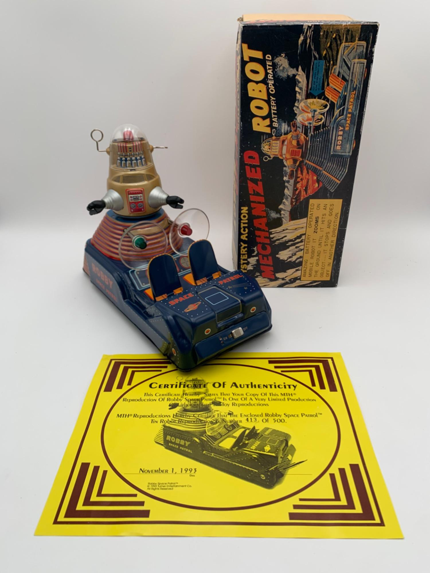 to be in pristine condition with the exception a small rub along Robby's chest just above the computer panel - see last photo. This 1993 toy comes in two sections – the Robby figure lifts off for storage in the box. . MTH made only 500 of these - this is #413.Comes with a
