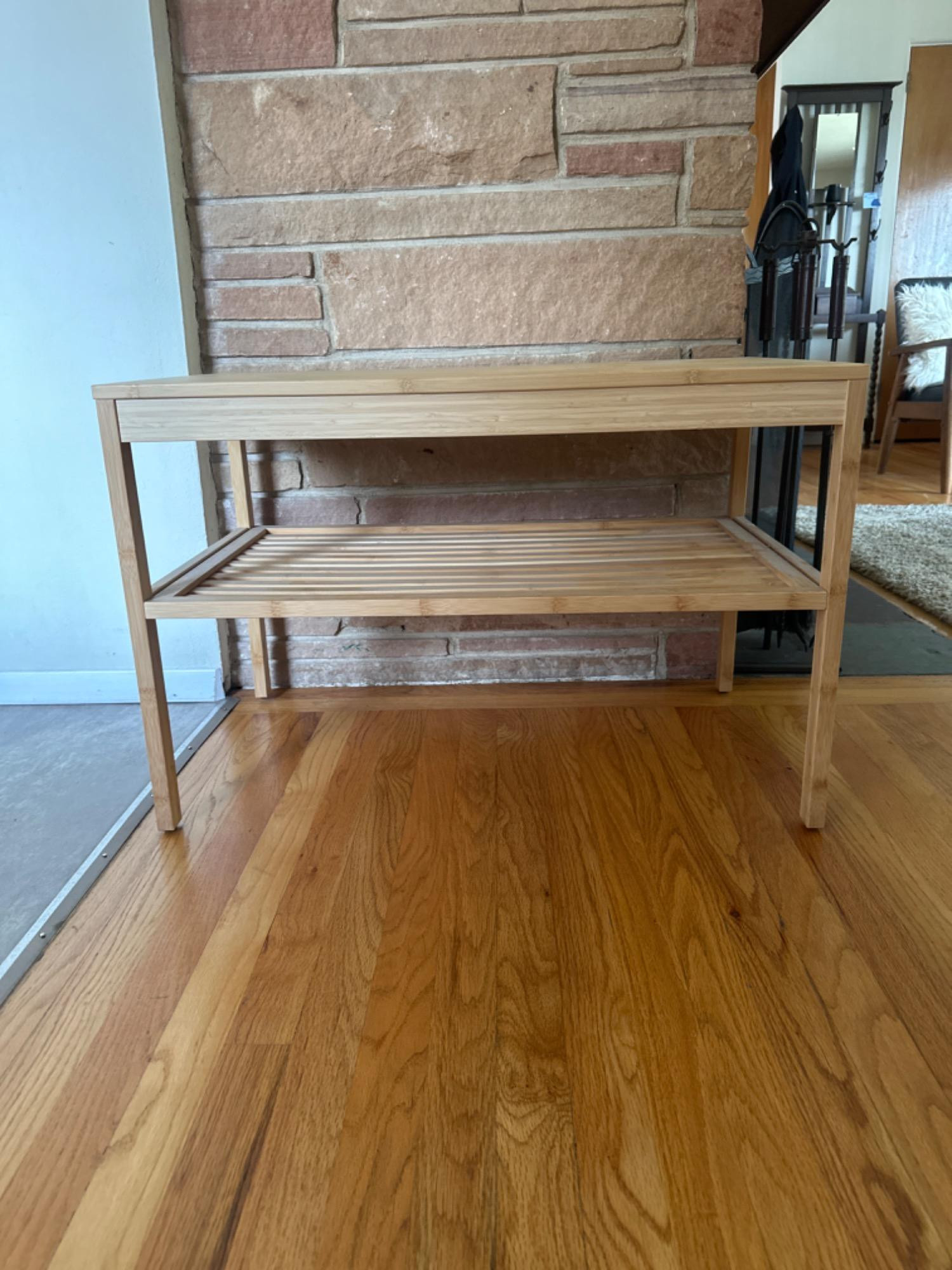 IKEA Nordkisa Bamboo Bench #2 This bench can double as a table and can be used in any room. Put it at the end of your bed or use it as a coffee table. There is wonderful extra storage space on the shelf below perfect for holding a folded blanket, quilt or shoes. Maximum wight capacity 250 lbs. Bidding on this lot is an agreement that: (1.) You