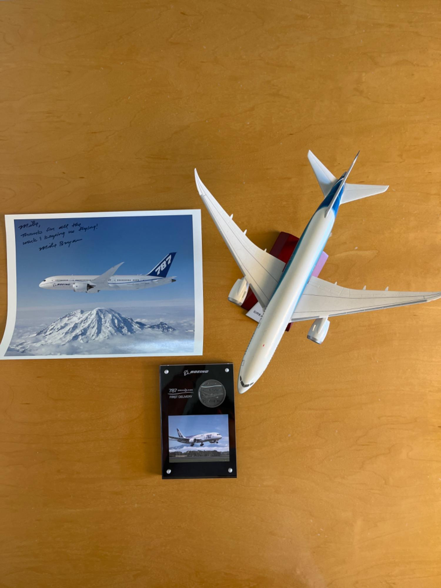 Lot # 25 - Boeing 787 Dreamliner Model on Stand & Memorabilia