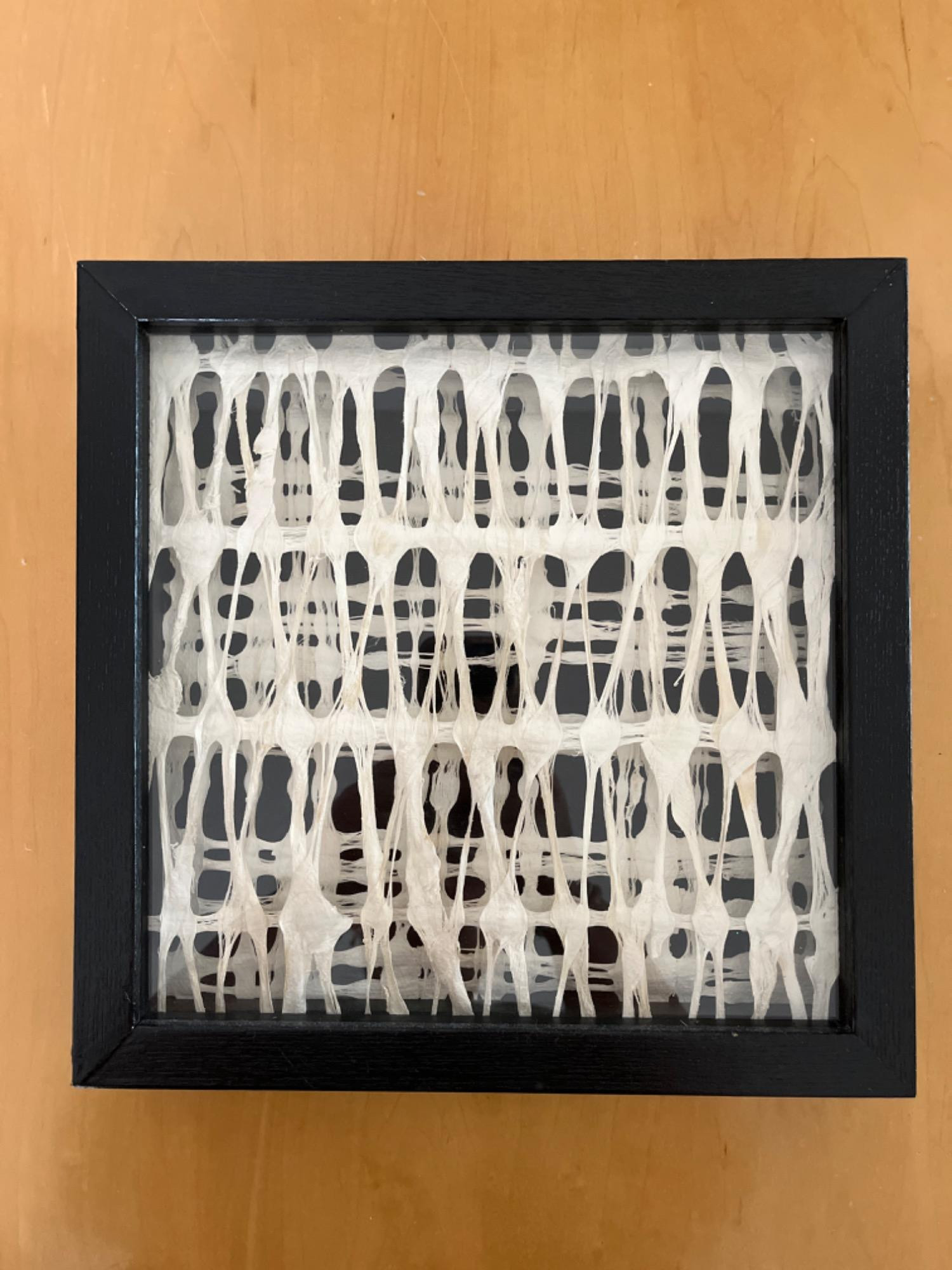 Organic Wall Art in Shadow Box The organic texture of the muslin and paper dislayed in 2 layers makes this very appealing Off-white muslin & paper Black wooden frame can be hung in 2 different configurations