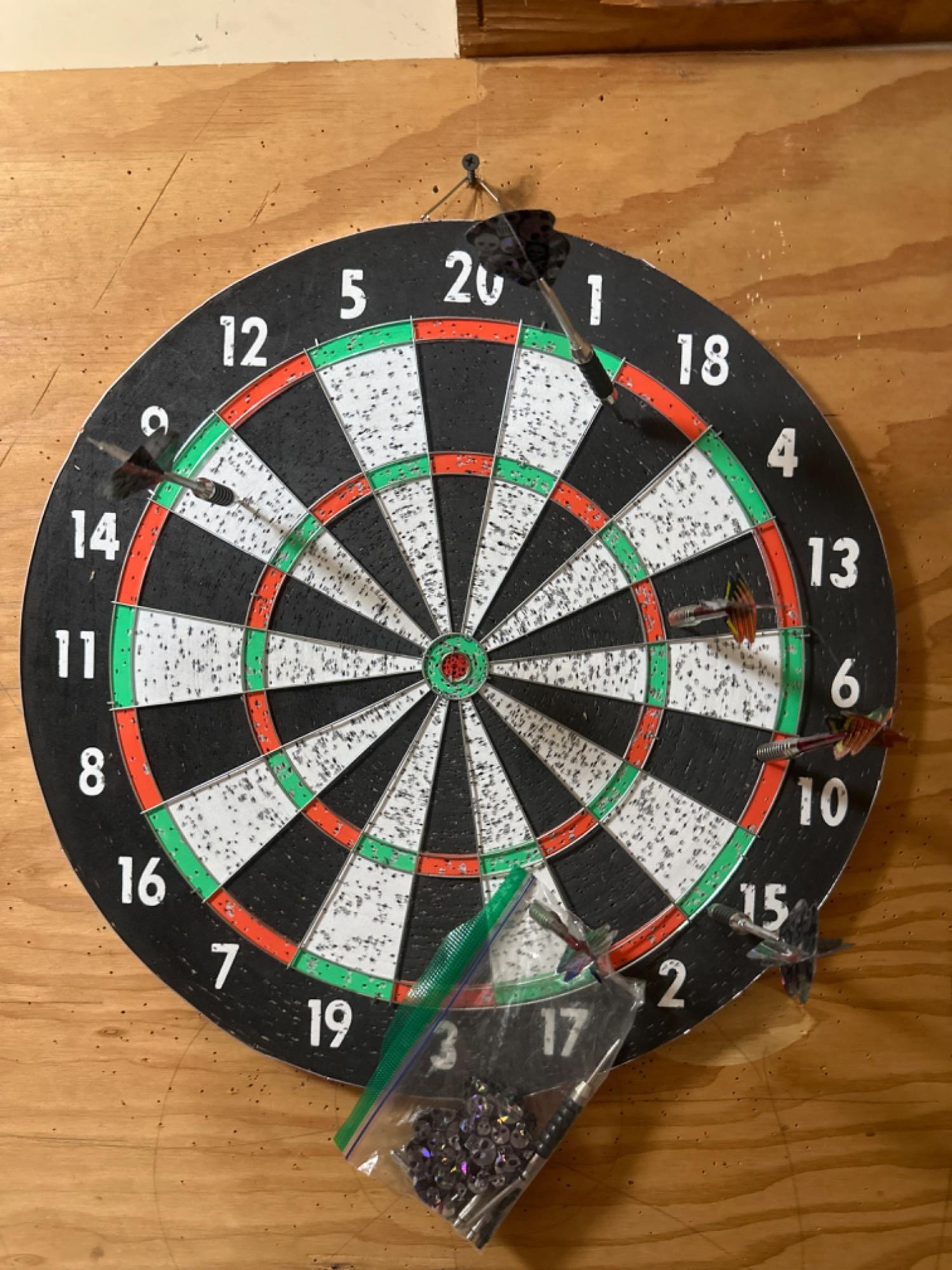 Dartboard with Six Darts and Parts