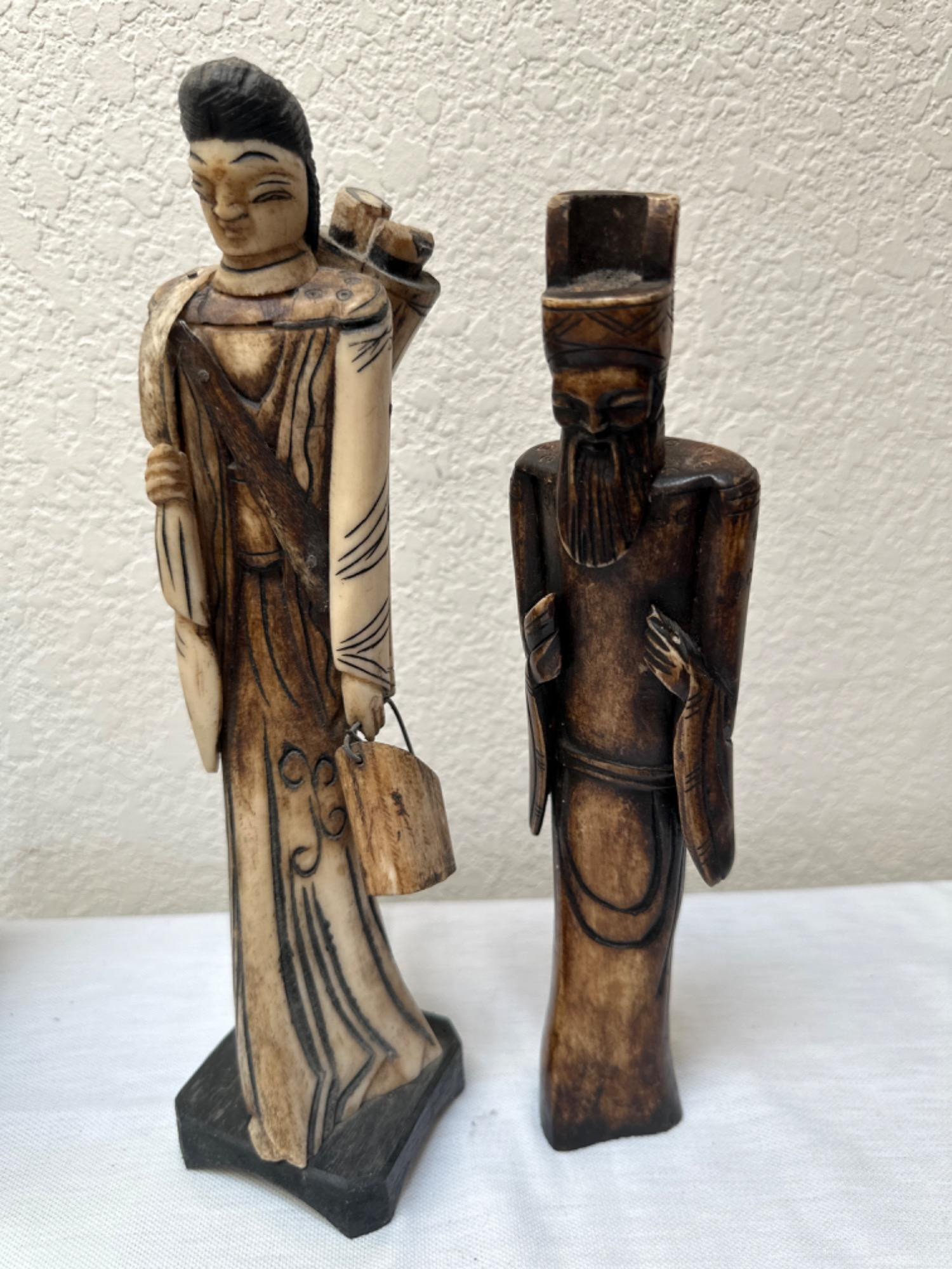 Lot # 24 - Antique Chinese Cattle or Yak Bone Carved Handmade Figurines
