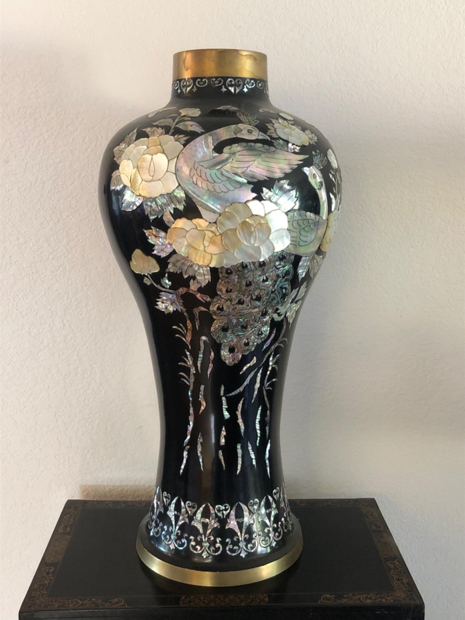 Lot # 29 - Vintage Cloisonne Brass & Black Enamel Mother Of Pearl Inlay-27"