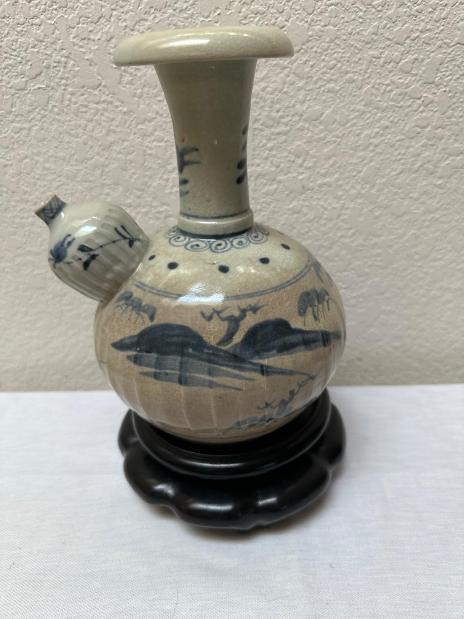 Lot # 32 - Antique Chinese Ming Dynasty Kendi Porcelain Vase with Stand