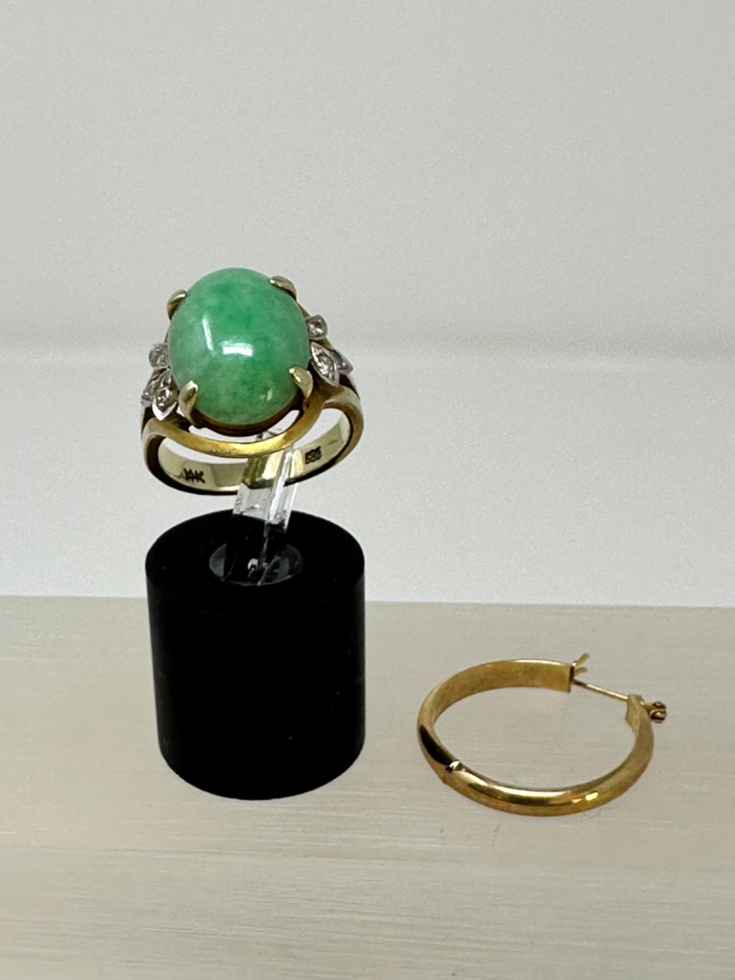 14K Gold Jade Ring & One 14K Gold Hoop- 6 Grams Gold Total. Size 6 ring. Please note, there is just one earring.