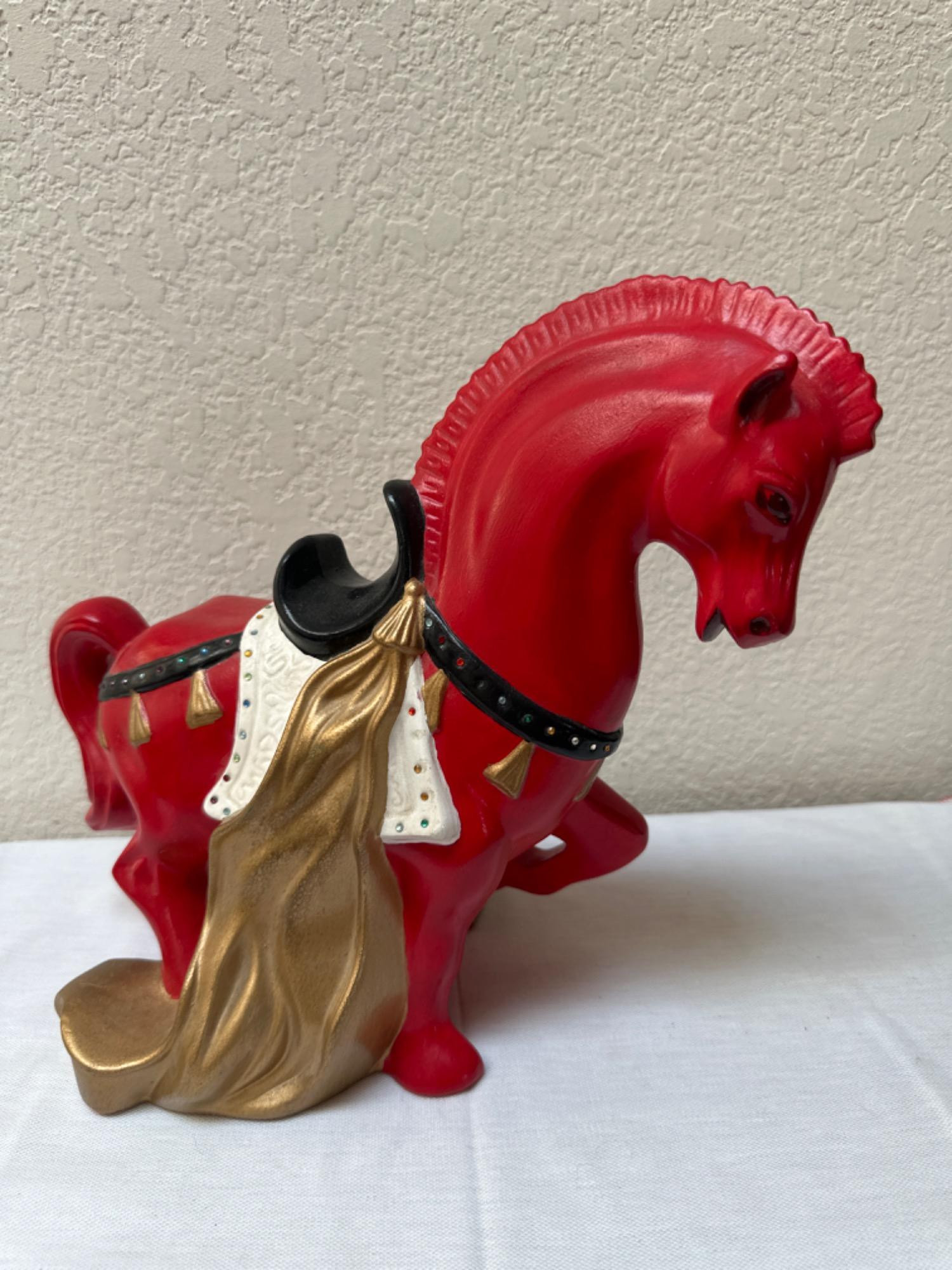 Lot # 86 - Brilliant Red Ceramic 10.5" Tall Trojan Parade Horse