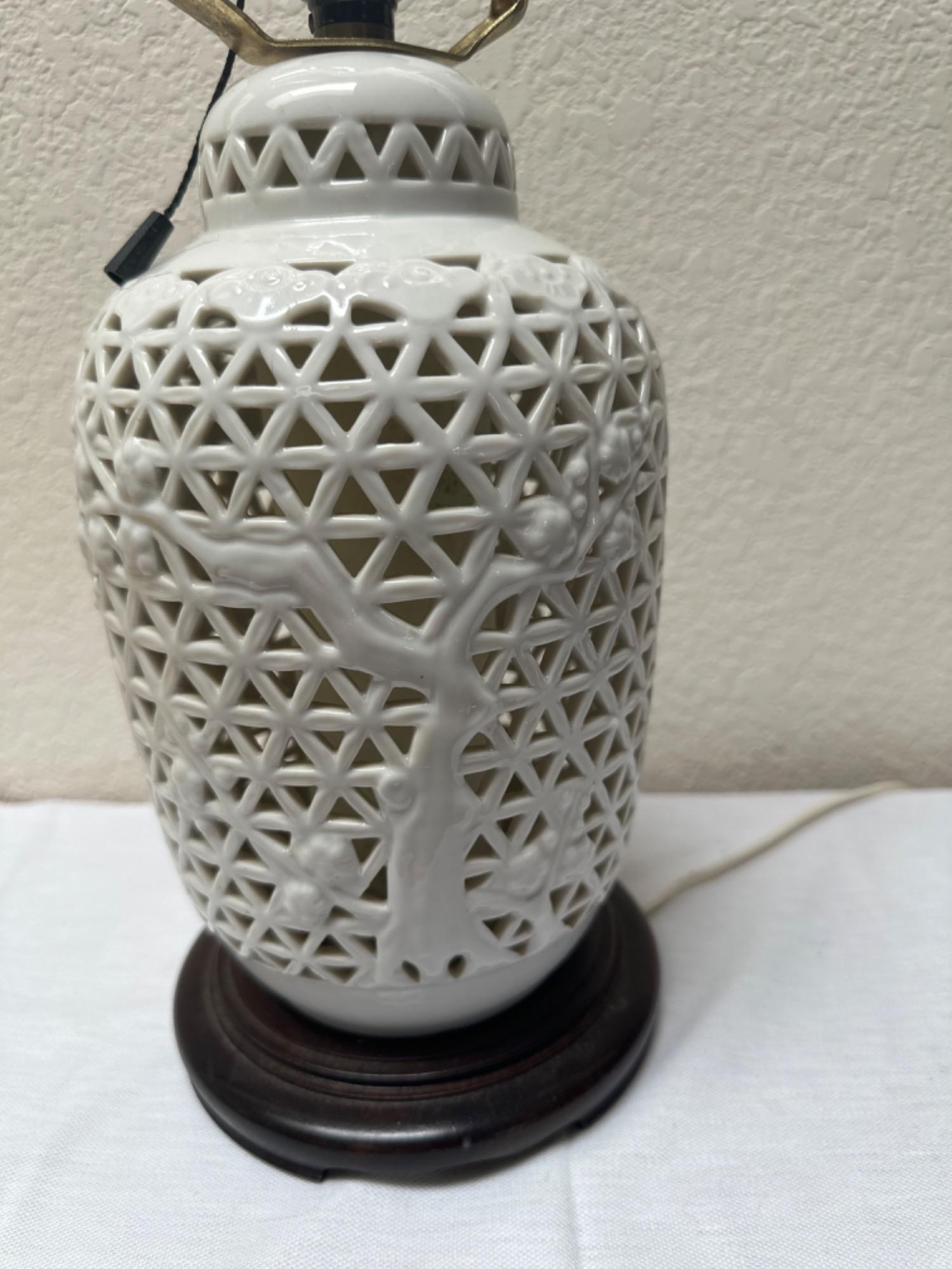 Lot # 131 - Blanc de Chine Japanese Pierced Porcelain Table Lamp