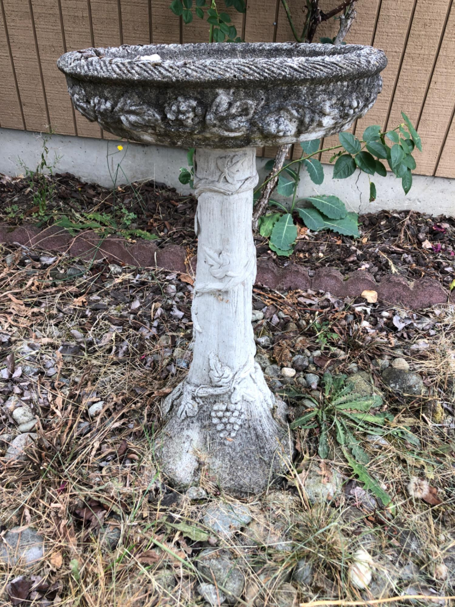 Cement Bird Bath-Frog Centerpiece, Grape Wrapped Pattern Base. Cement Bird Bath