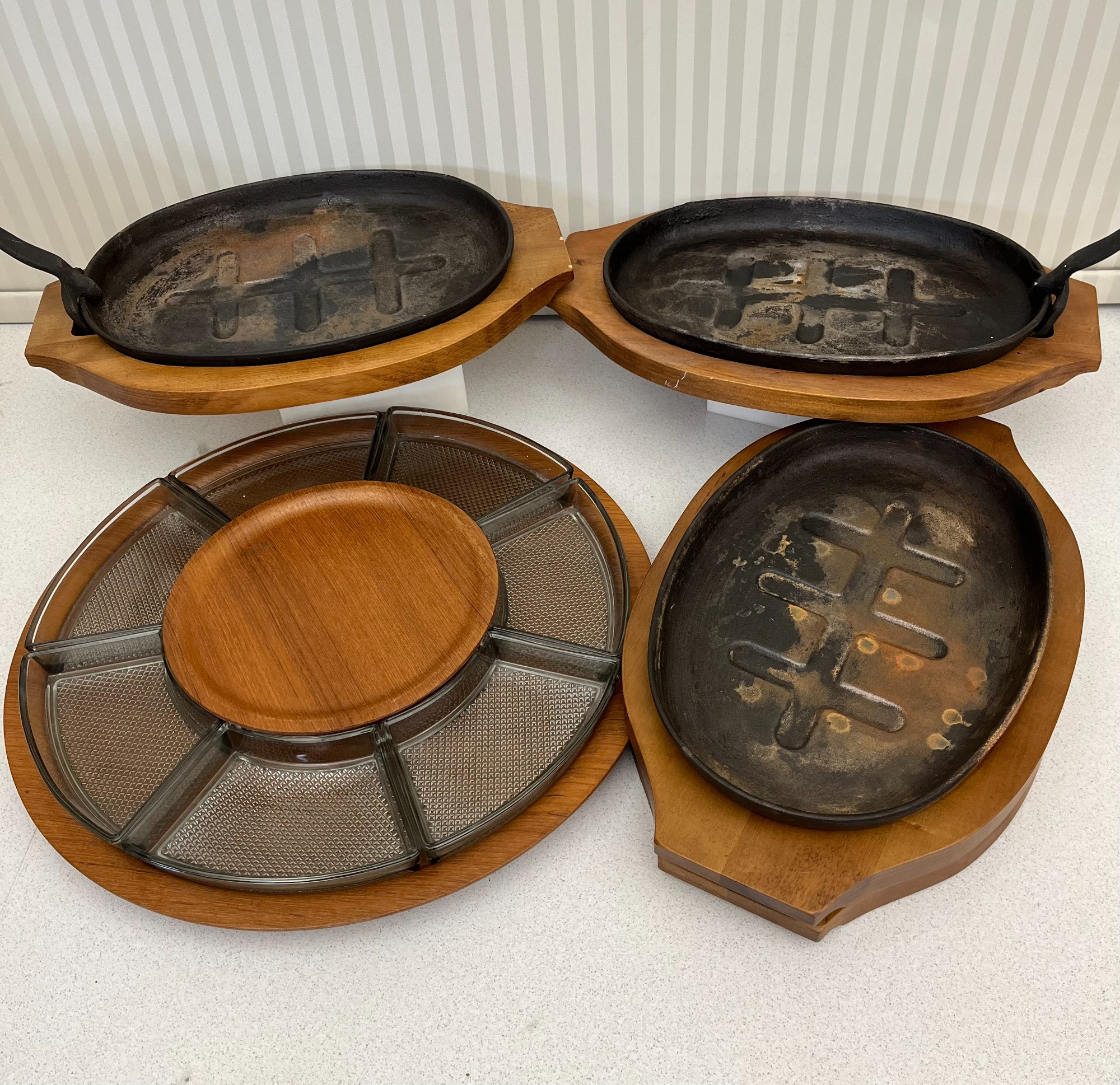 Lot # 5 - Teak Party Combo-Lazy Susan and Cast Iron Servers