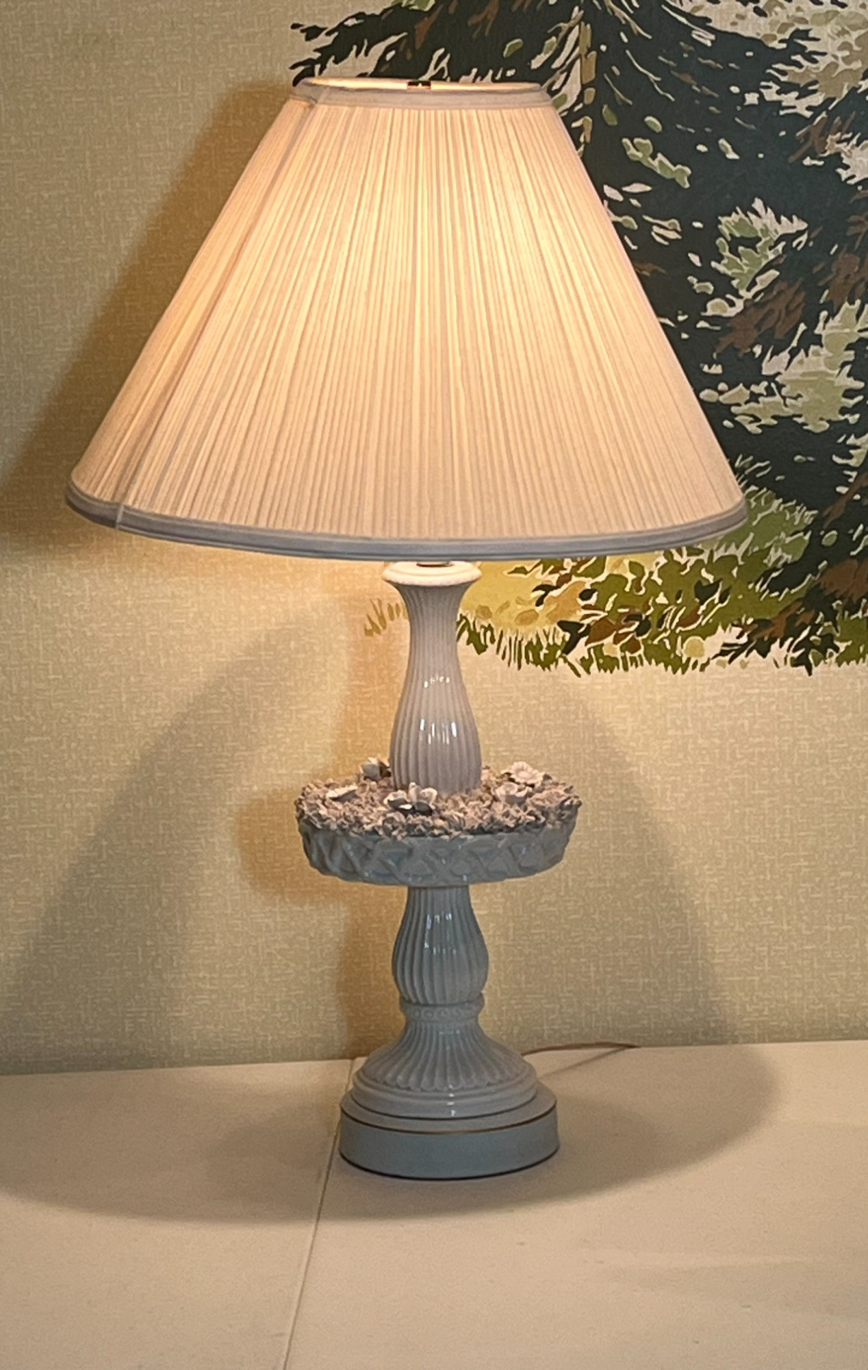 Off-Wht Ceramic Flower Lamp Dia: 7 1/2” x 30”