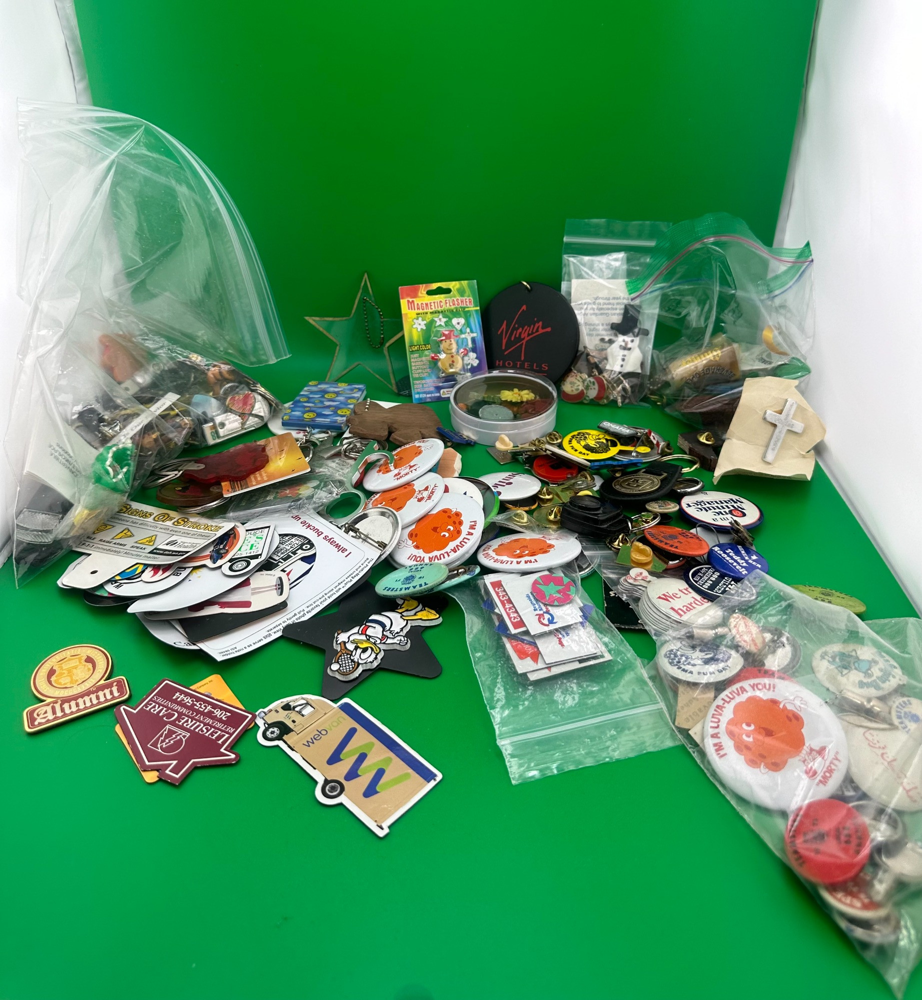 Vtg. Keychains, Button Pins & Refrigerator Magnets