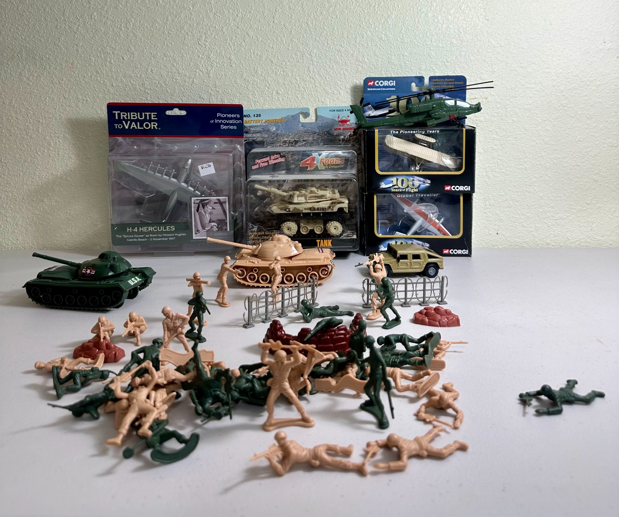 Stand your ground and fight… Toy Army Lot Early Army Men, Army Tank and Airplane toys