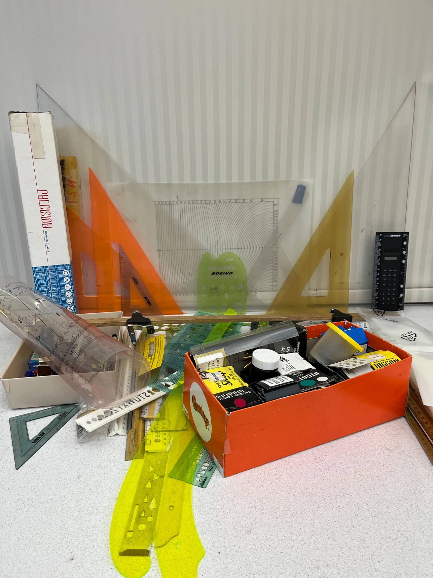 Drafting & Calligraphy Lot A draftsman’s delight - various triangles, lettering guide, templates, French curves, protractors and more