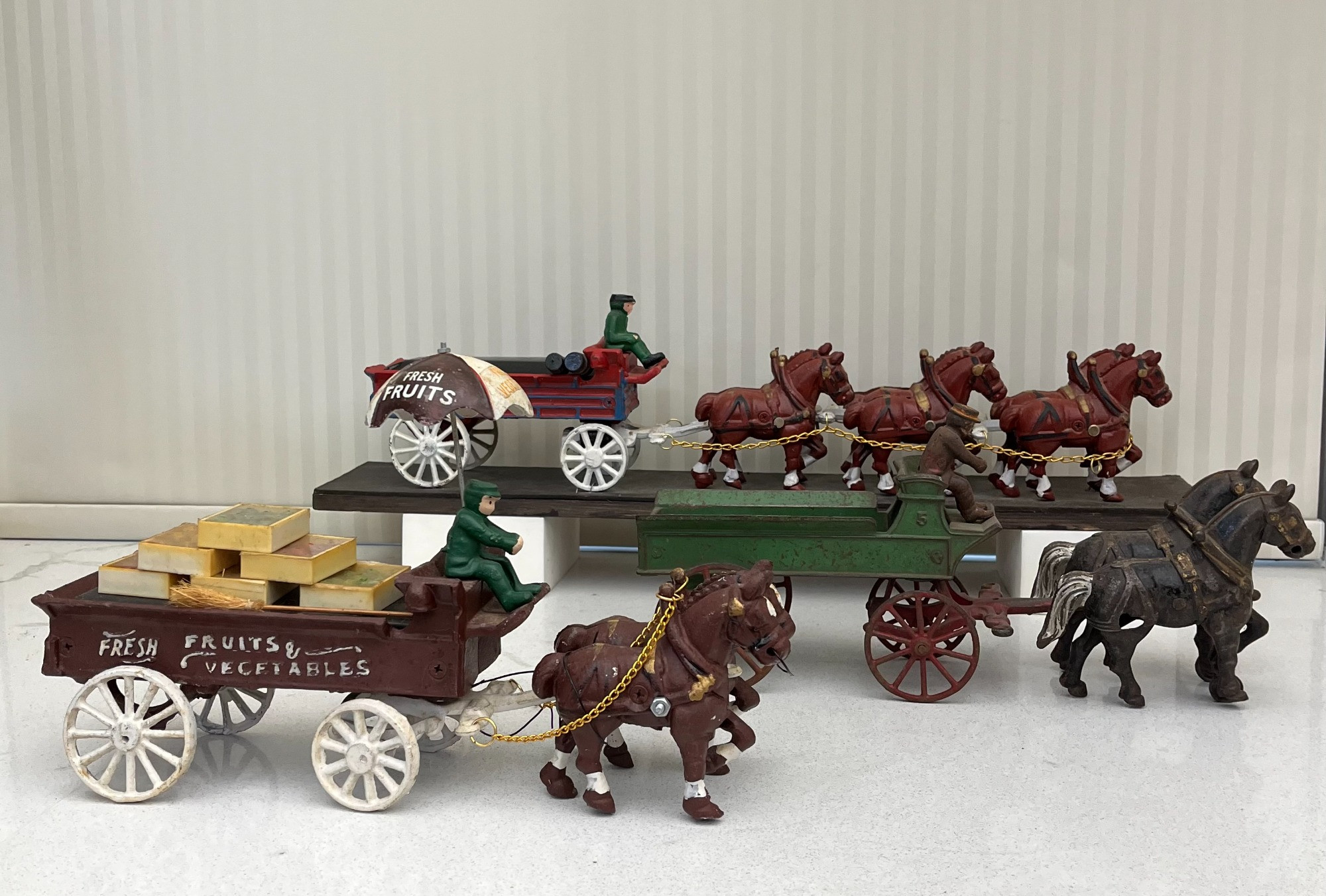 Lot # 188 - 3 Cast Iron Horse Drawn Wagons & Riders