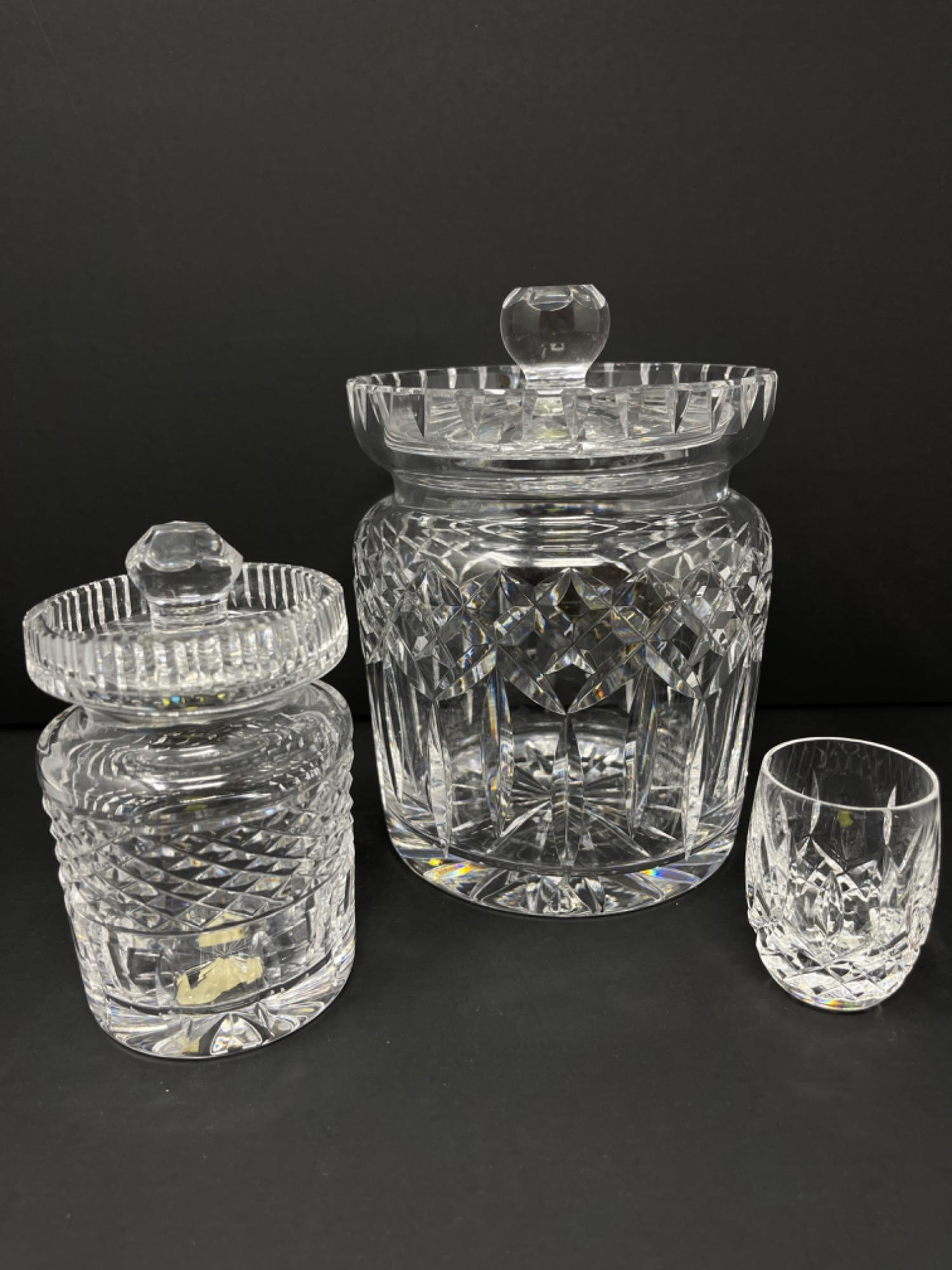 Lot # 25 - Waterford Crystal Lidded Biscuit Barrel, Jam Jar and More