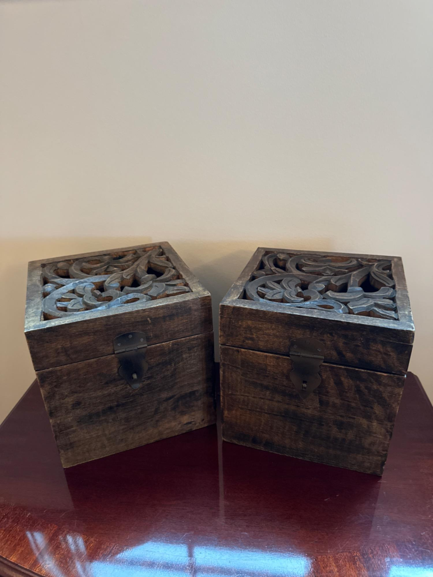 Lot # 50 - Intricately Carved Vintage Wooden Boxes: Set of 2