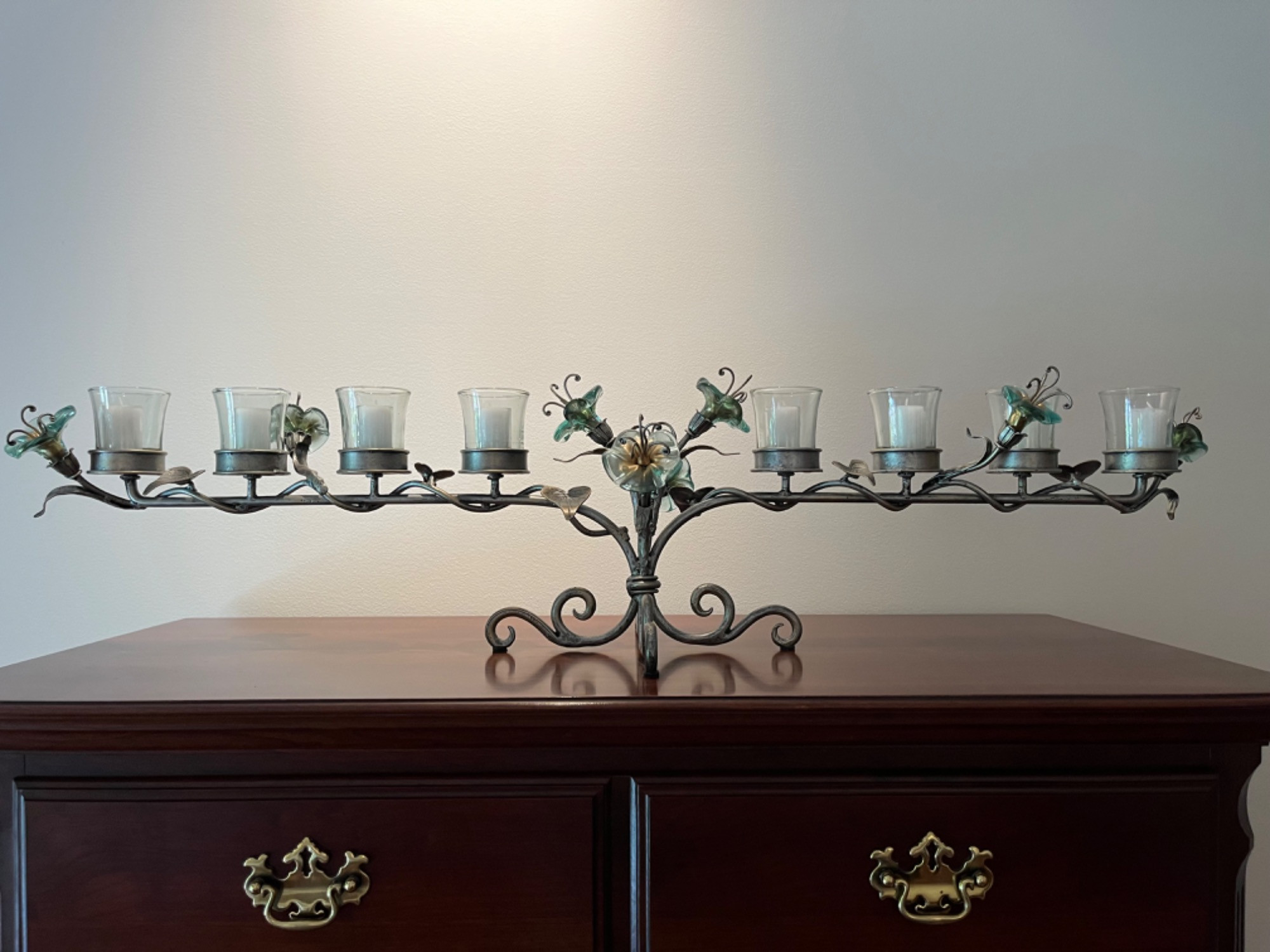 Lot # 104 - Candelabra Iron Low Broad Form Eight Votive Toleware Florals Accents