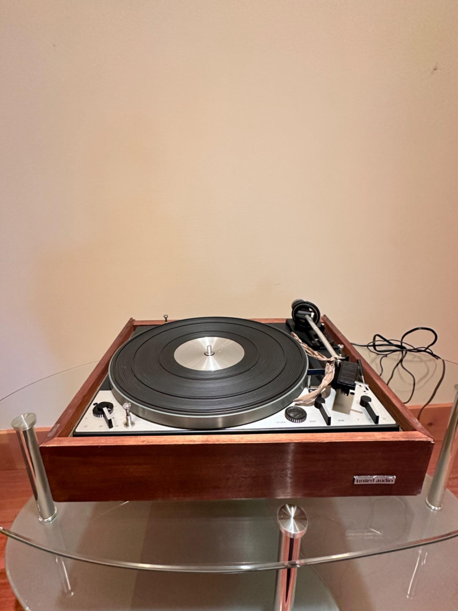 Vintage 1229 United Audio Dual Turntable Record Player. One of the best turntables Dual ever made. Can be played in either manual or automatic mode.Plays records at 33 1/3, 45 and 78 rpm. Shuts off automatically when play is done. Has variable pitch control for 33 1/3 and 45 rpm speeds. Please note that the needle arm has a dent in the metal. This turns on but the needle is missing so I couldn't test.