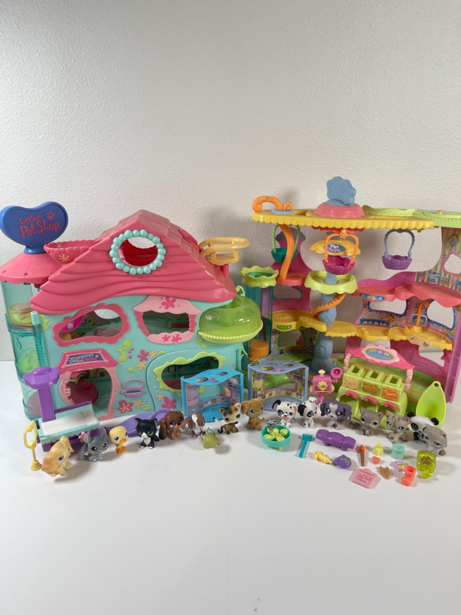 Littlest Pet Shop Houses, Animals and Accessories Tallest: 15.5" H Smallest: >1" H All need cleaning and some are likely stained. Shown in photos as best as possible. UNKNOWN COMPLETENESS.