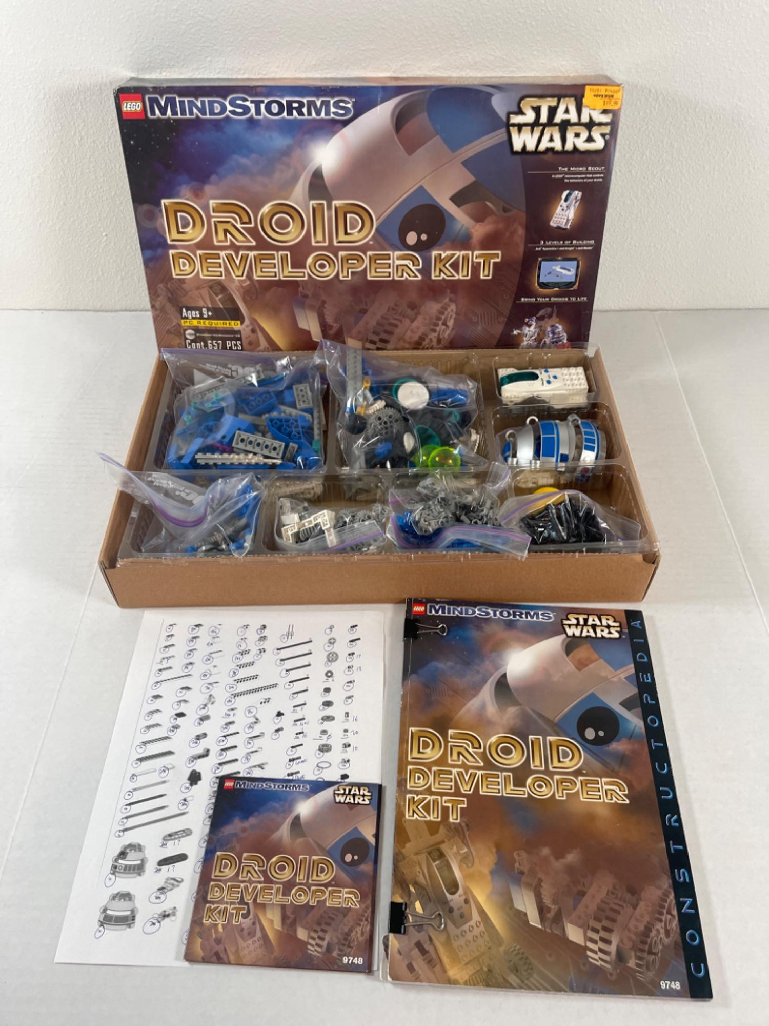 Lego Mindstorms Star Wars Droid Developer Kit - USED AND OPEN UNKNOWN COMPLETENESS. All contents have been opened. Pieces included have been photographed. There is a list where it looks like someone tried to account for all the pieces, but it is unclear how accurate it is. See photos. Good used condition.