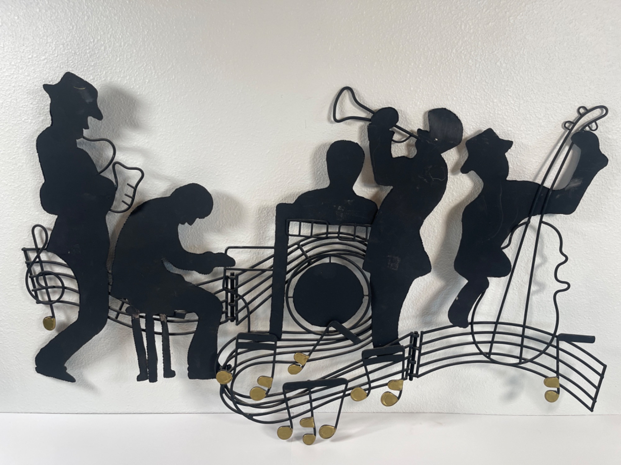 Vintage Metal Musician Wall Piece Has some scratches, tarnishing and bending to metal. Shown in photos.
