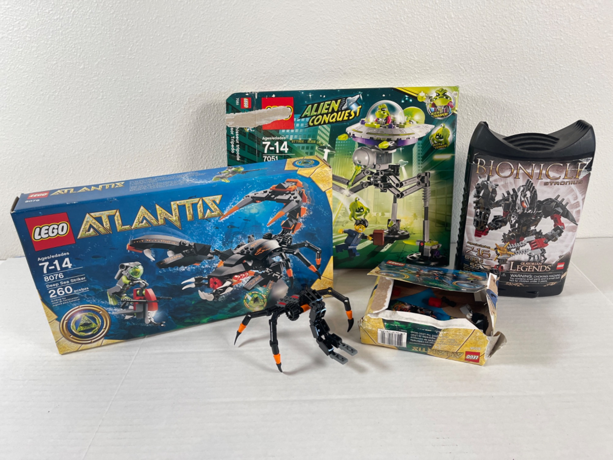 OPENED Lego Sets - Atlantis, Bionicle, Alien Conquest + All sets are likely incomplete due to being opened and used. However, all included pieces are shown in photos. Bags inside of large Atlantis box are all SEALED!