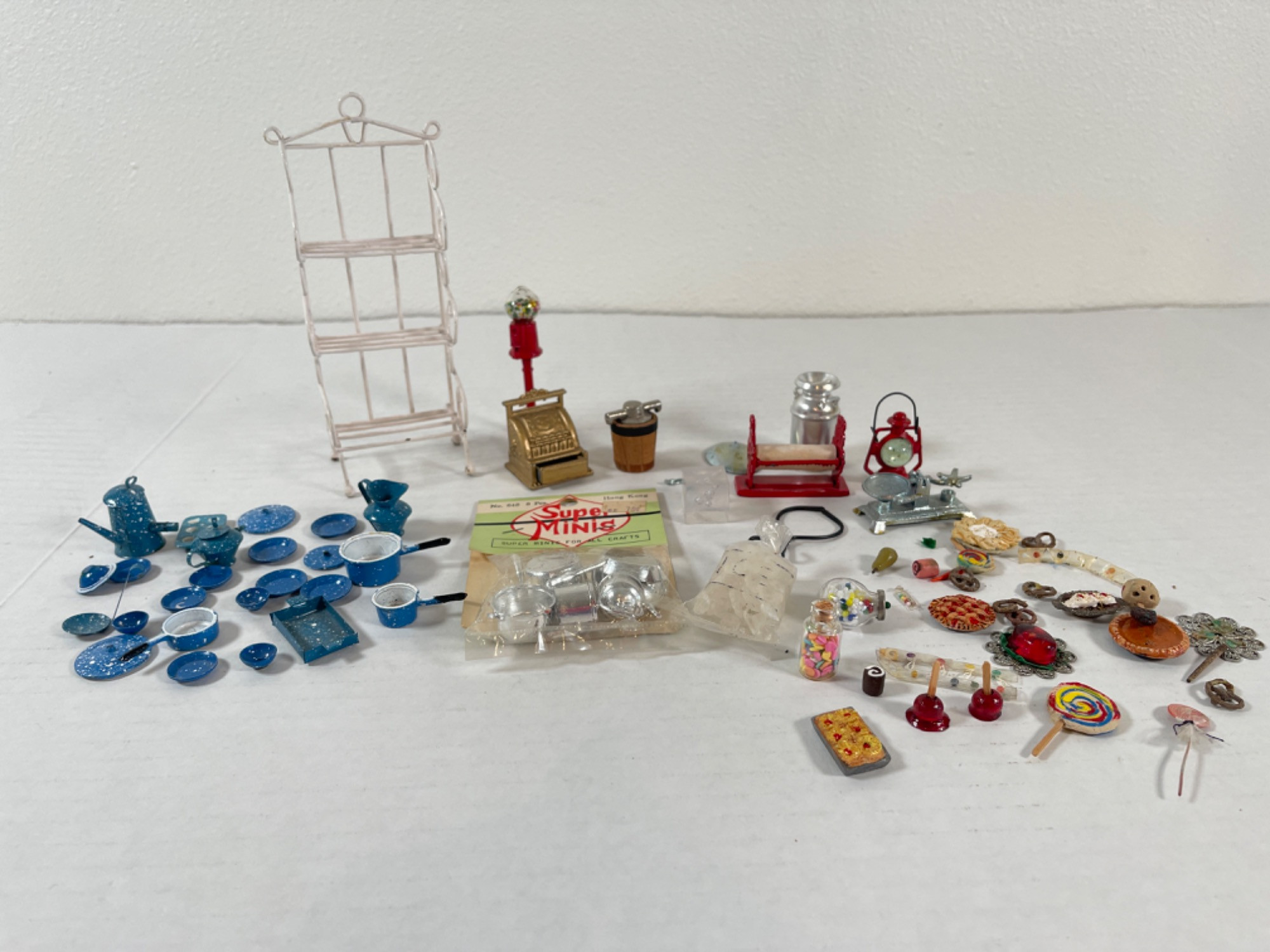 Vintage Miniature Doll Accessories All pieces are old, but in good condition. Shelf: 6" H