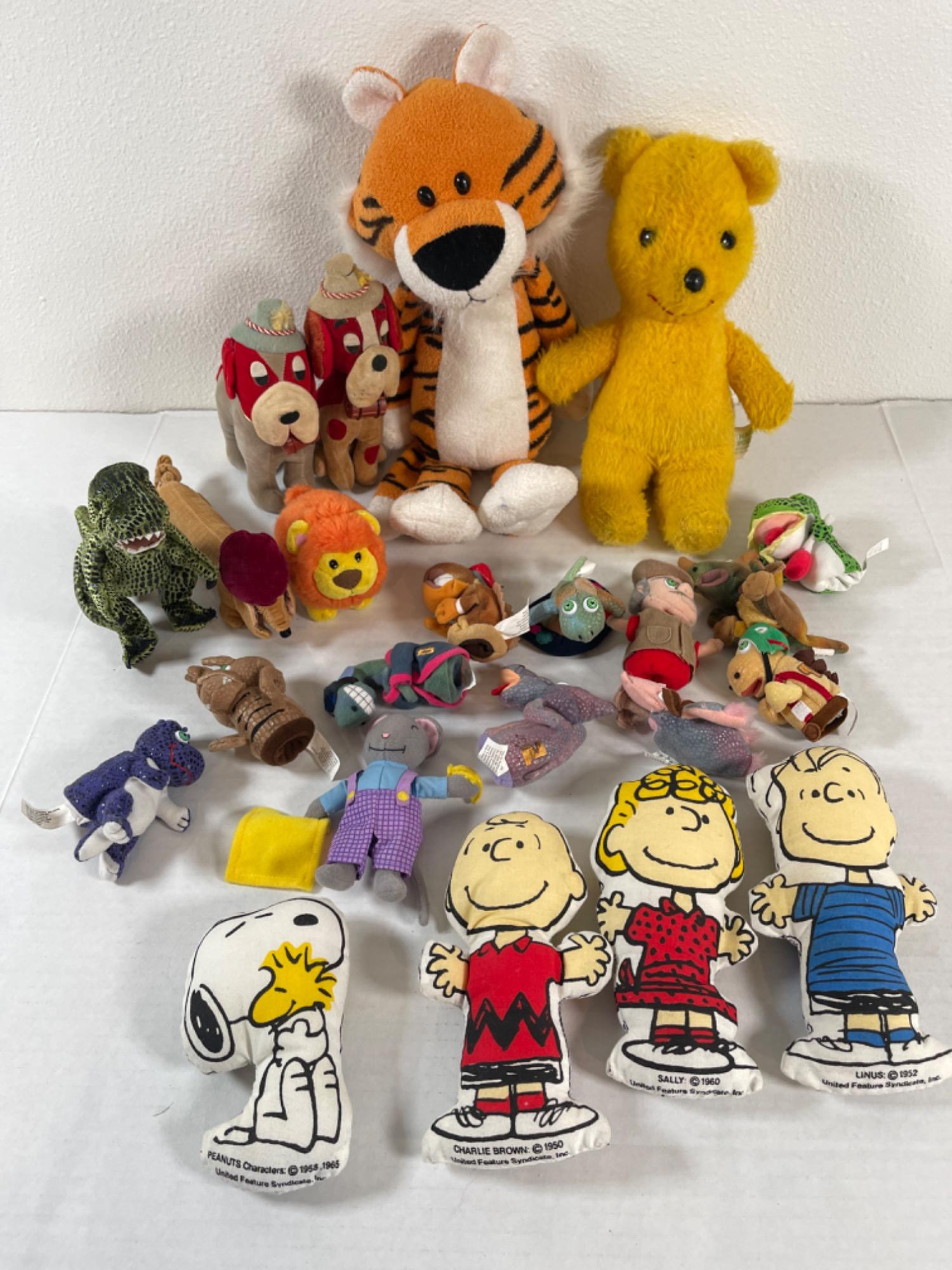 Stuffed Animals - Vintage Dream Pets, Snoopy Sally Peanuts & More! Some pieces have holes or staining. Please see photos. Smallest: 3" H Largest: 16" H